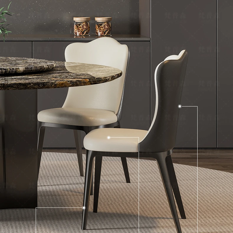 輸入プラチナダイヤモンド天然ラグジュアリー石ダイニングテーブル+本革ダイニングチェア*6