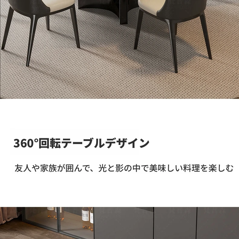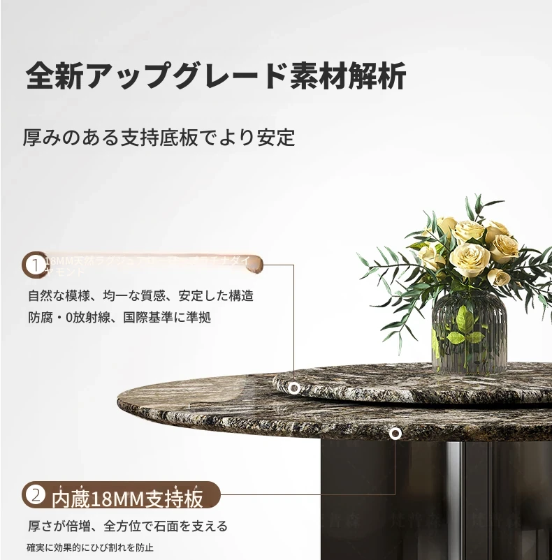 輸入プラチナダイヤモンド天然ラグジュアリー石ダイニングテーブル+ターンテーブル+本革ダイニングチェア*4