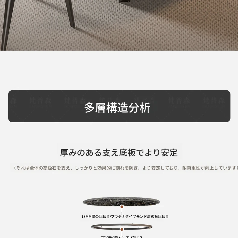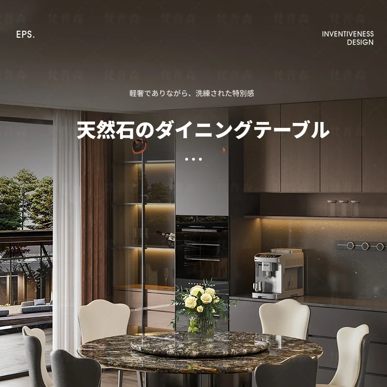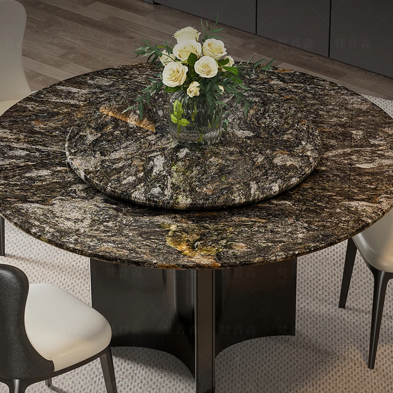 輸入プラチナダイヤモンド天然ラグジュアリー石ダイニングテーブル+ターンテーブル