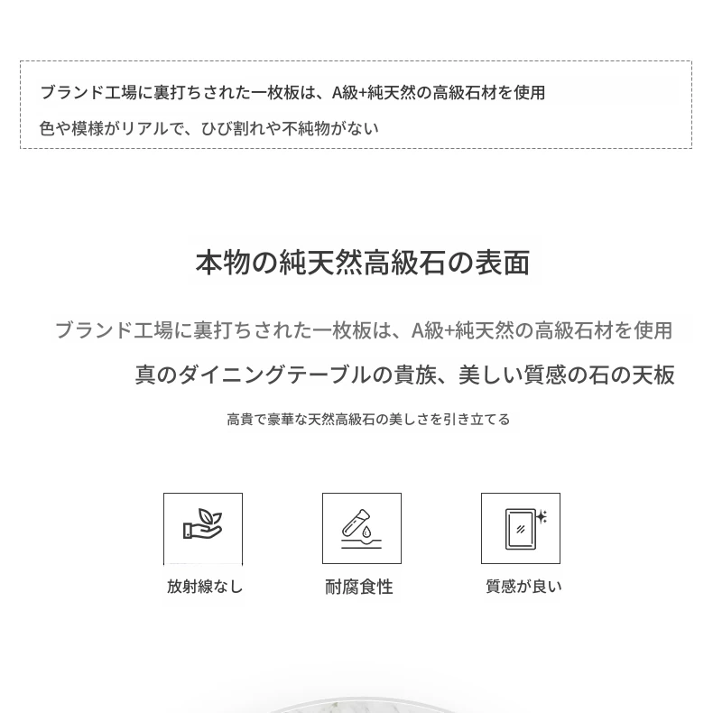 輸入プラチナダイヤモンド天然ラグジュアリー石ダイニングテーブル+本革ダイニングチェア*4