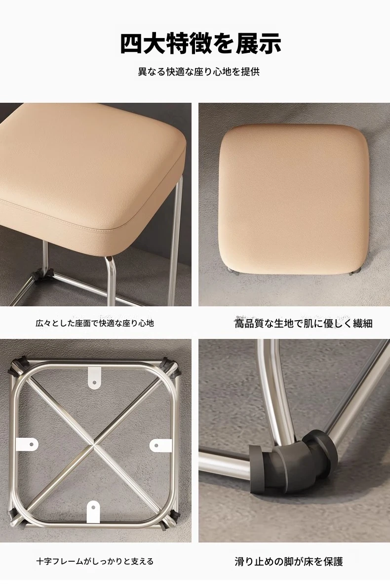 特厚鋼鉄製の折りたたみチェア - 家庭用・レストラン向け!実用的でスタイリッシュな高座椅子。リビングにもぴったり、重ねて収納可能なソフトパッド付きデザイン!
