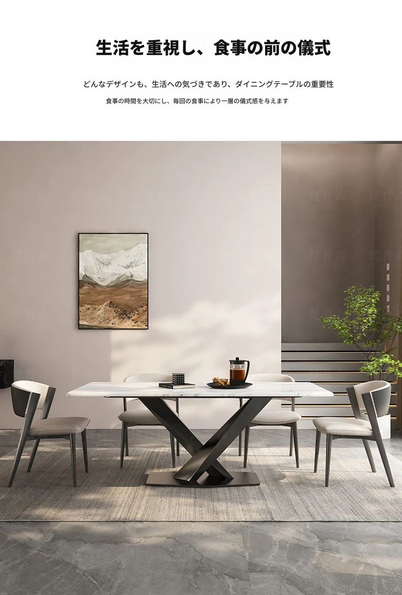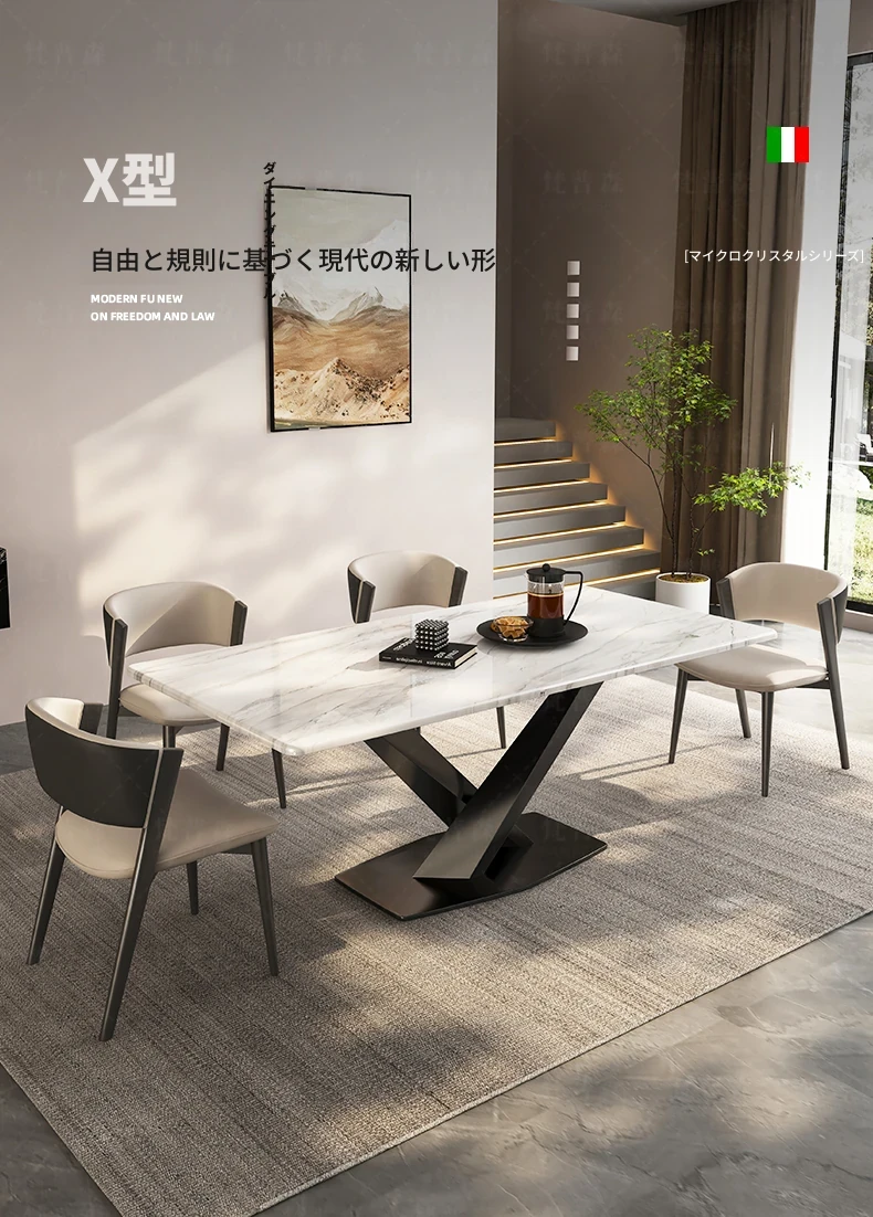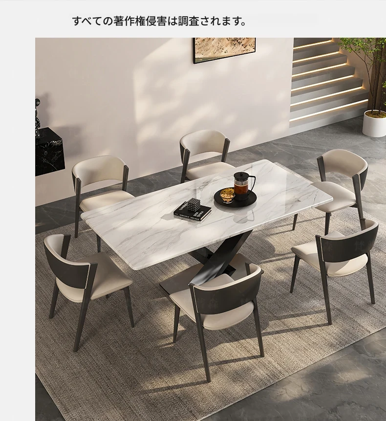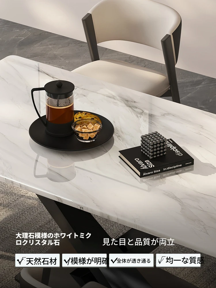 【大花白】天然微晶石テーブル+特級猫爪皮チェア*6
