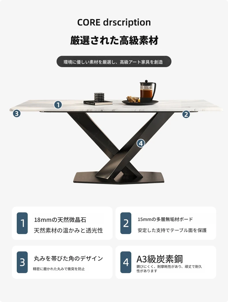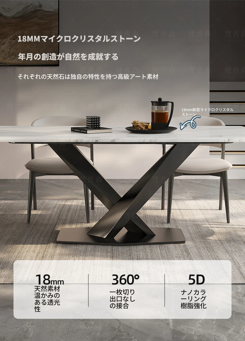 【大花白】天然微晶石テーブル+特級猫爪皮チェア*4