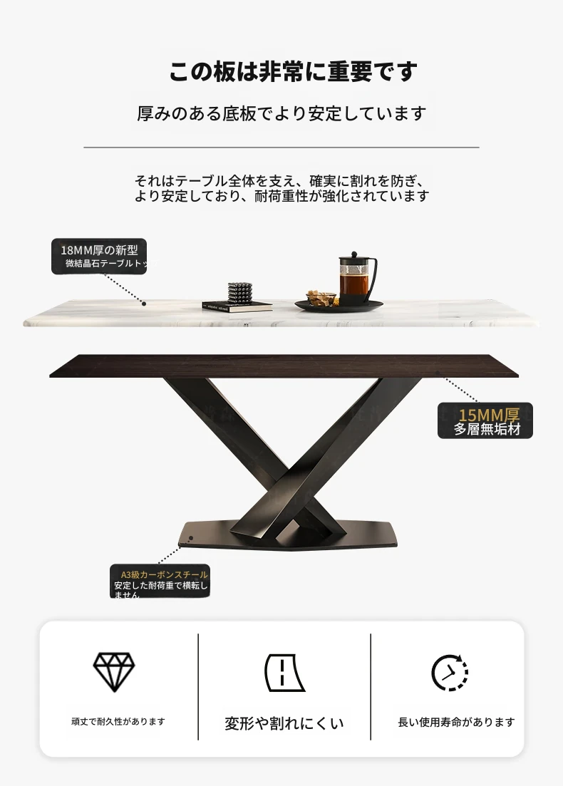 ヴァンプソン高級感のある微晶石ダイニングテーブルセット - 天然超晶石使用、大花模様の長方形テーブルと椅子のコンビネーションで、食卓に洗練された雰囲気をプラス!