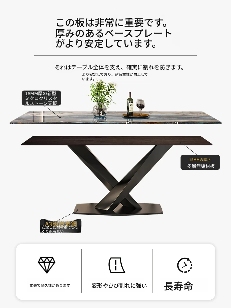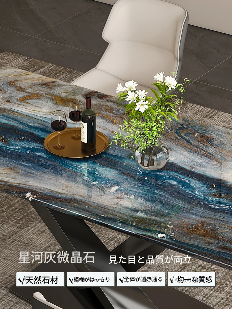 ヴァンプソン星河グレー天然ミクロ結晶石ダイニングテーブル2024新作ラグジュアリー石製長方形テーブルとチェアセット - 高級感溢れるデザインで、特別な食卓を演出します。