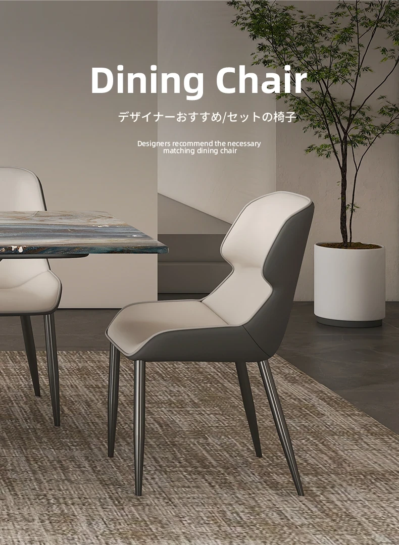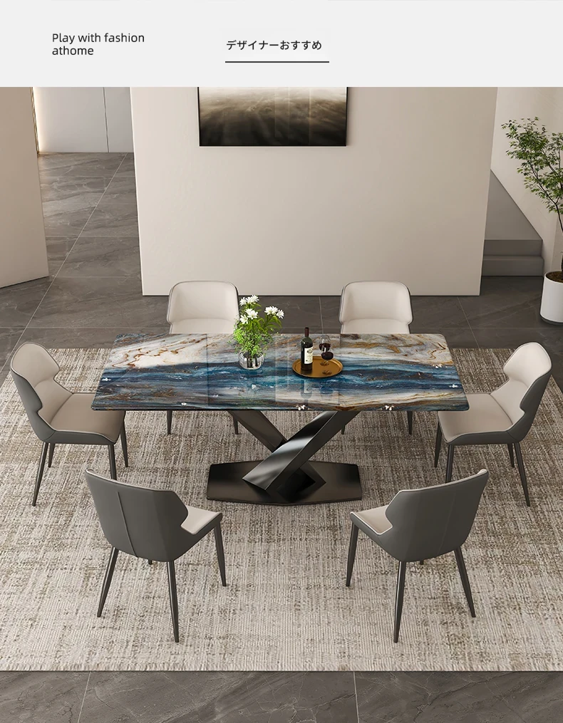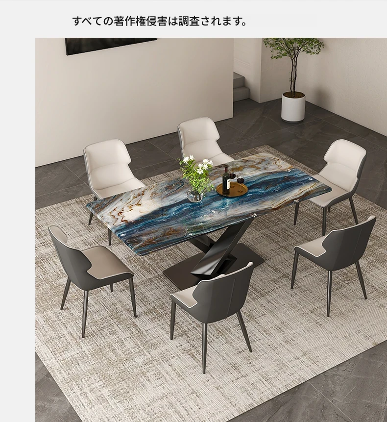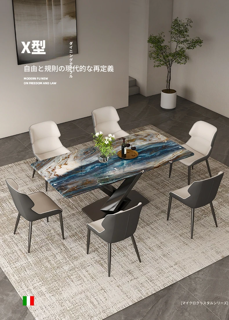 【星河灰】天然微晶石のダイニングテーブル+特級猫爪革のダイニングチェア*6