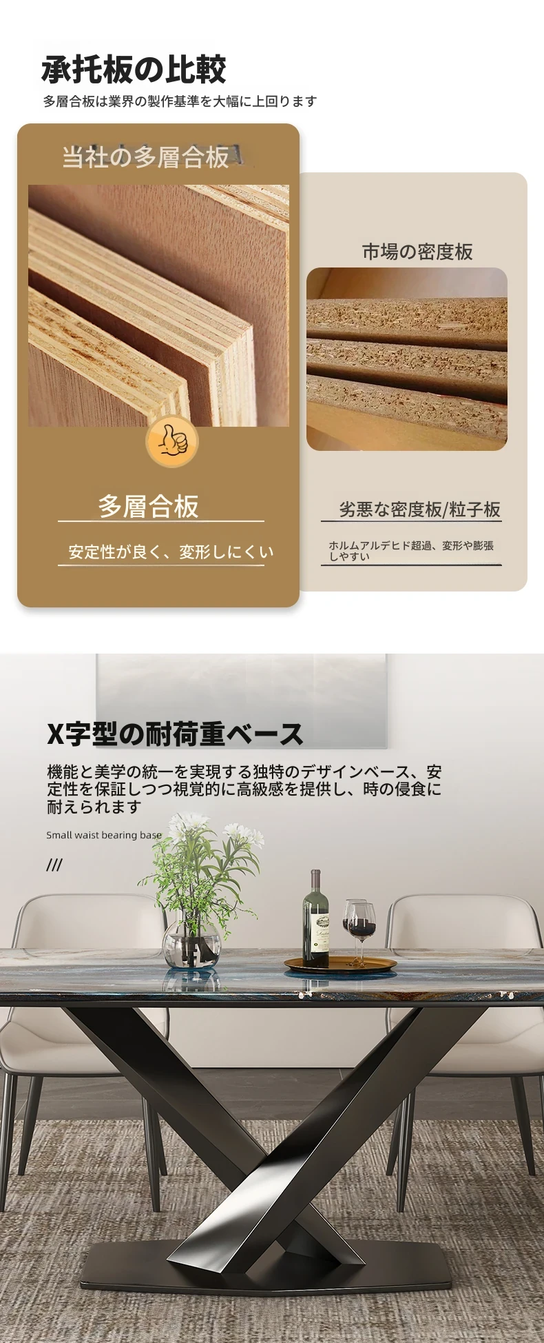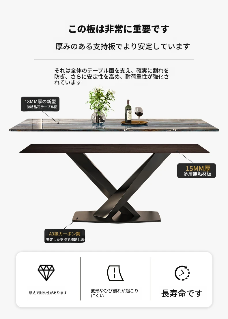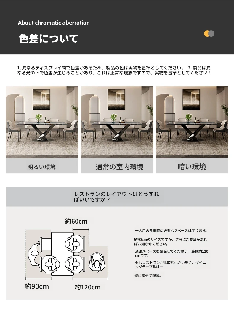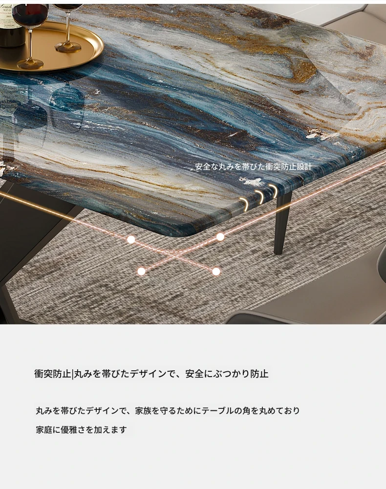 【星河灰】天然微晶石のダイニングテーブル+特級猫爪革のダイニングチェア*6