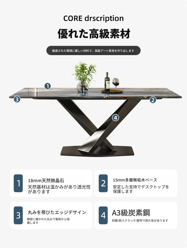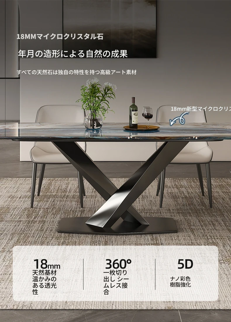 【星河灰】天然微晶石のダイニングテーブル+特級猫爪革のダイニングチェア*4