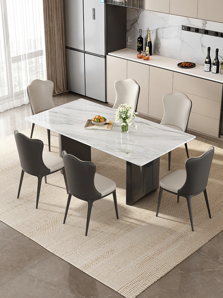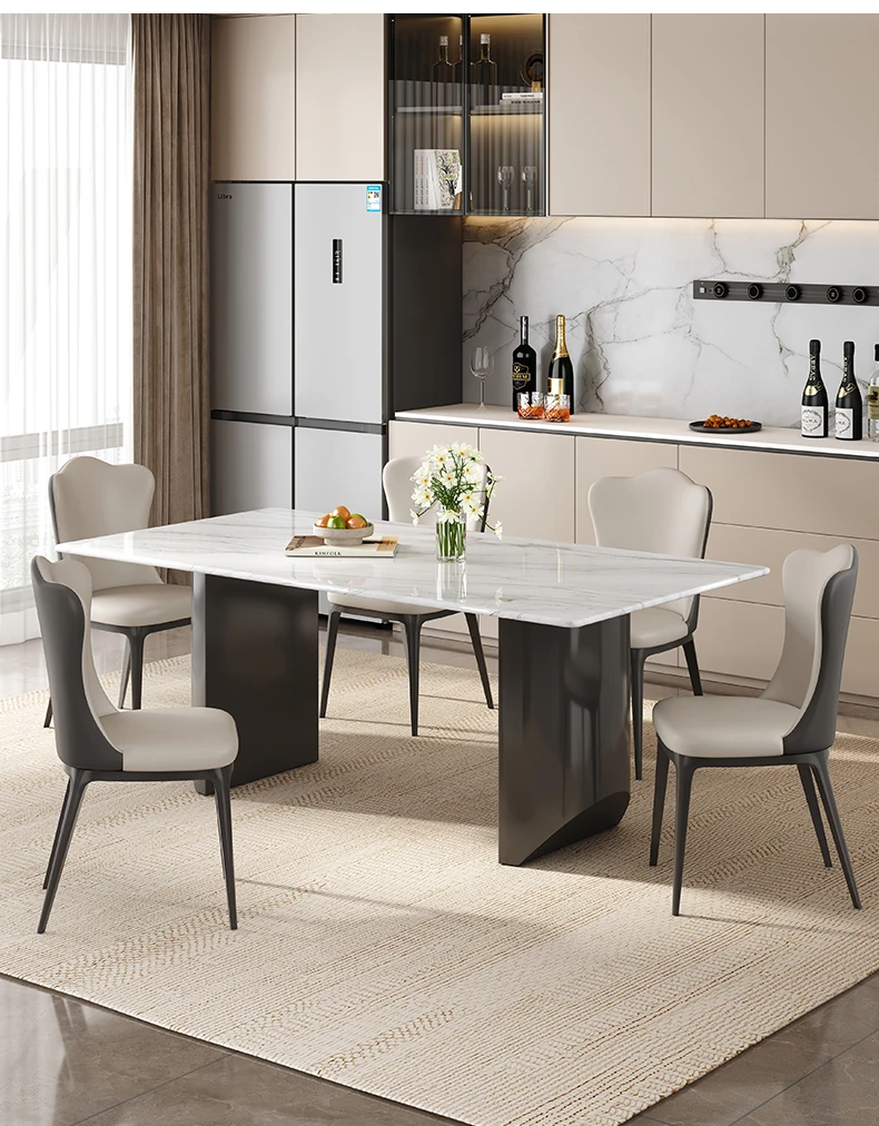 2.2M水云涧微晶石ダイニングテーブル+猫爪皮ダイニングチェア*6