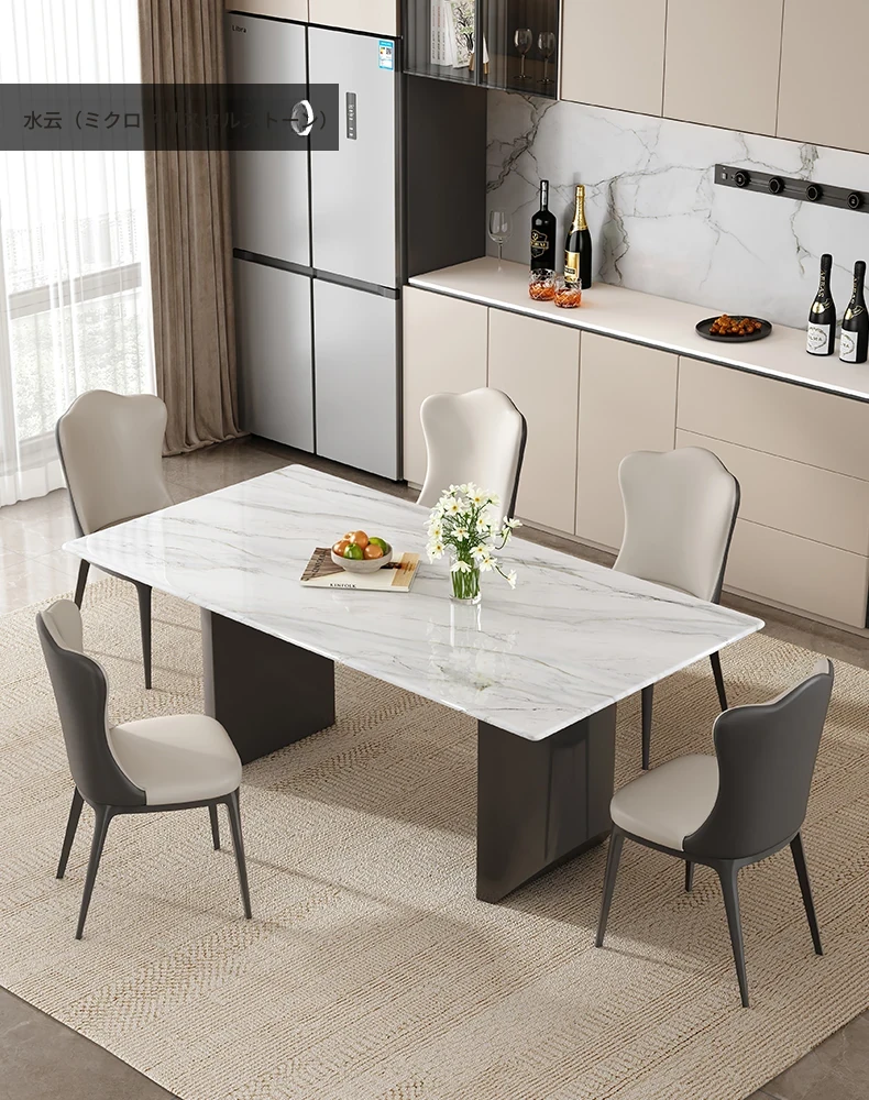 1.4M水云涧微晶石ダイニングテーブル+猫爪皮ダイニングチェア*6