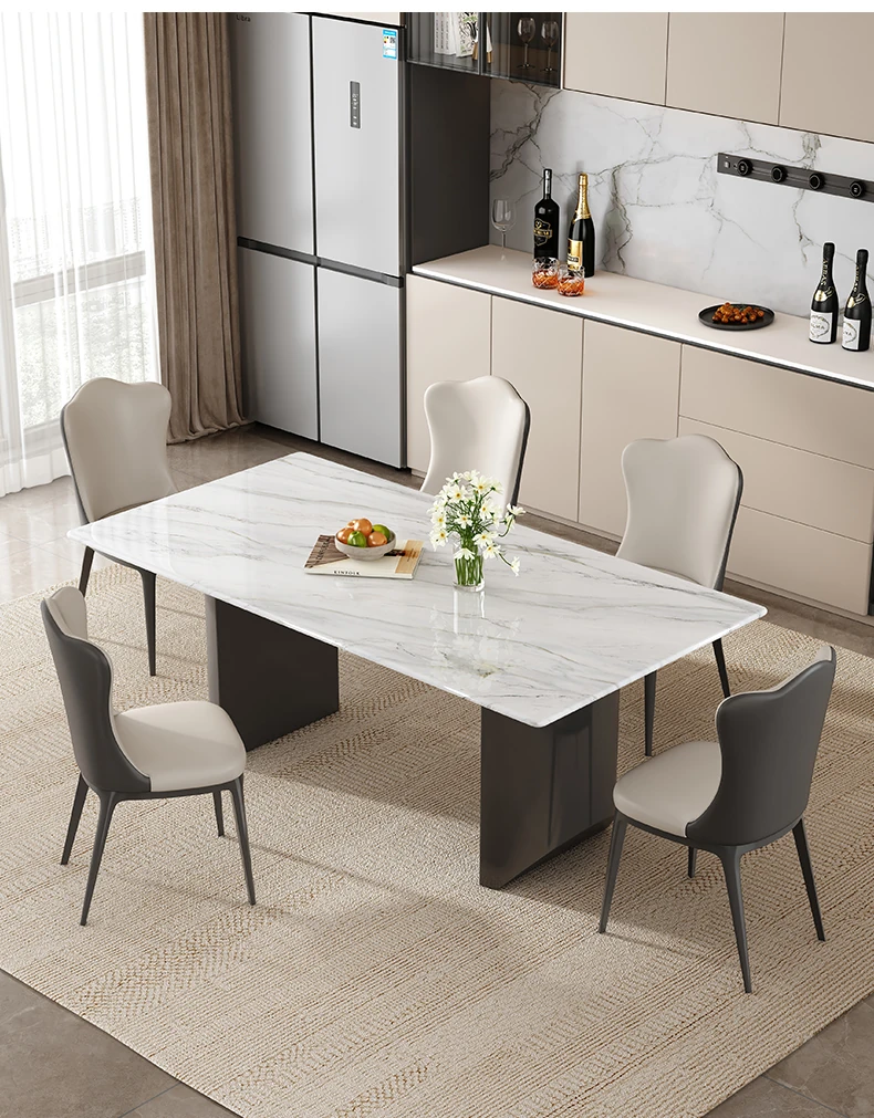 2M水云涧微晶石ダイニングテーブル+猫爪皮ダイニングチェア*6