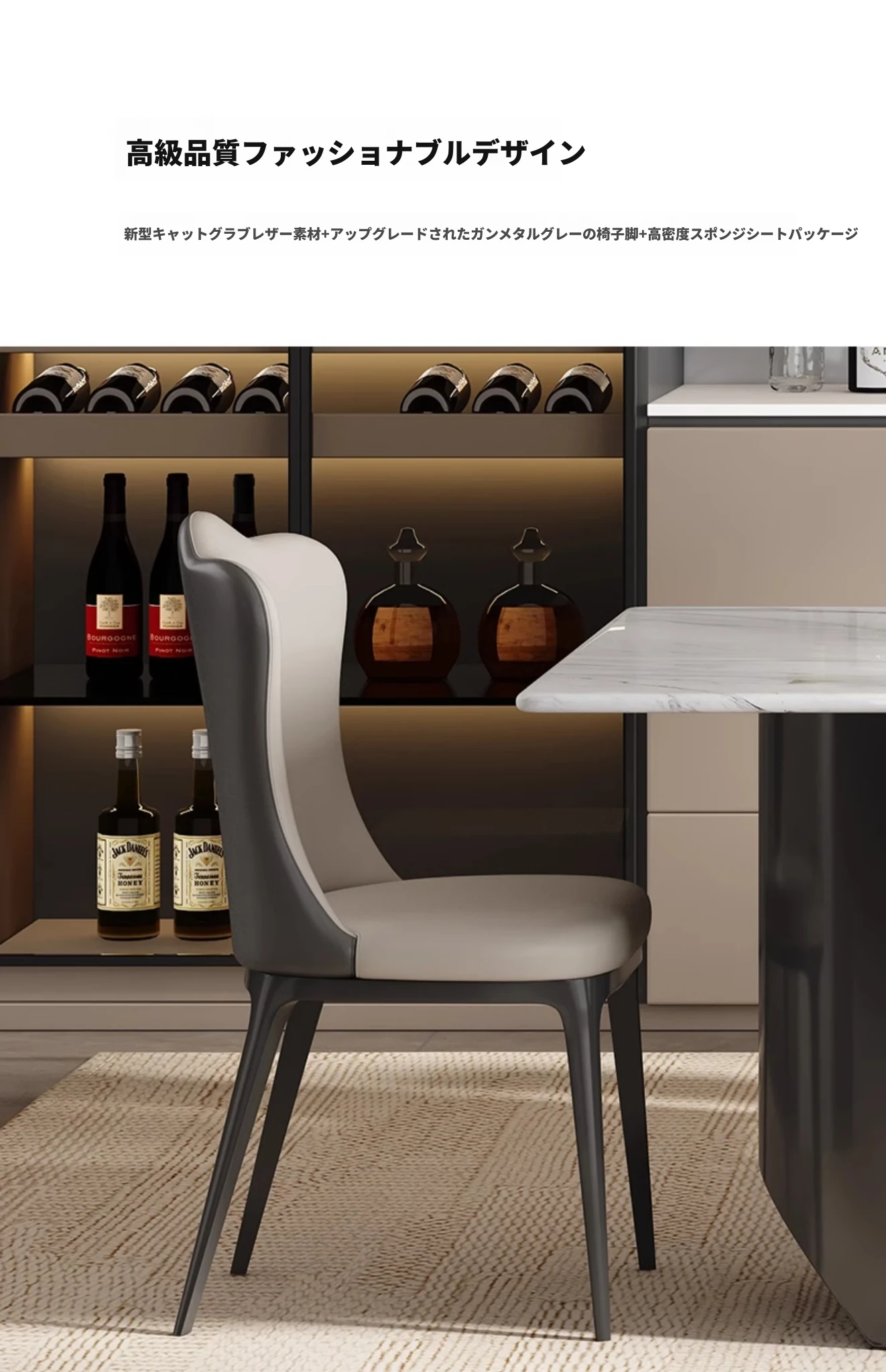 1.4M水云涧微晶石ダイニングテーブル+猫爪皮ダイニングチェア*4