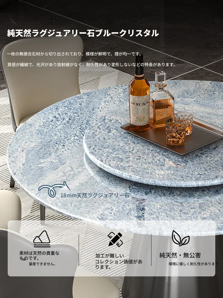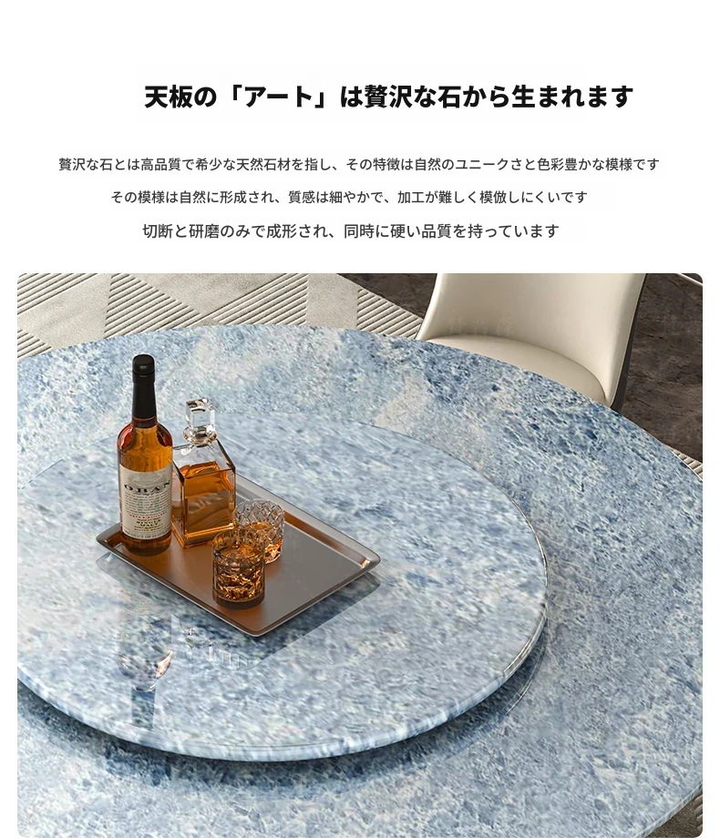 輸入ブルークリスタル天然ラグジュアリーストーンダイニングテーブル+回転盤+本革ダイニングチェア*6 【偽物は10倍返し】