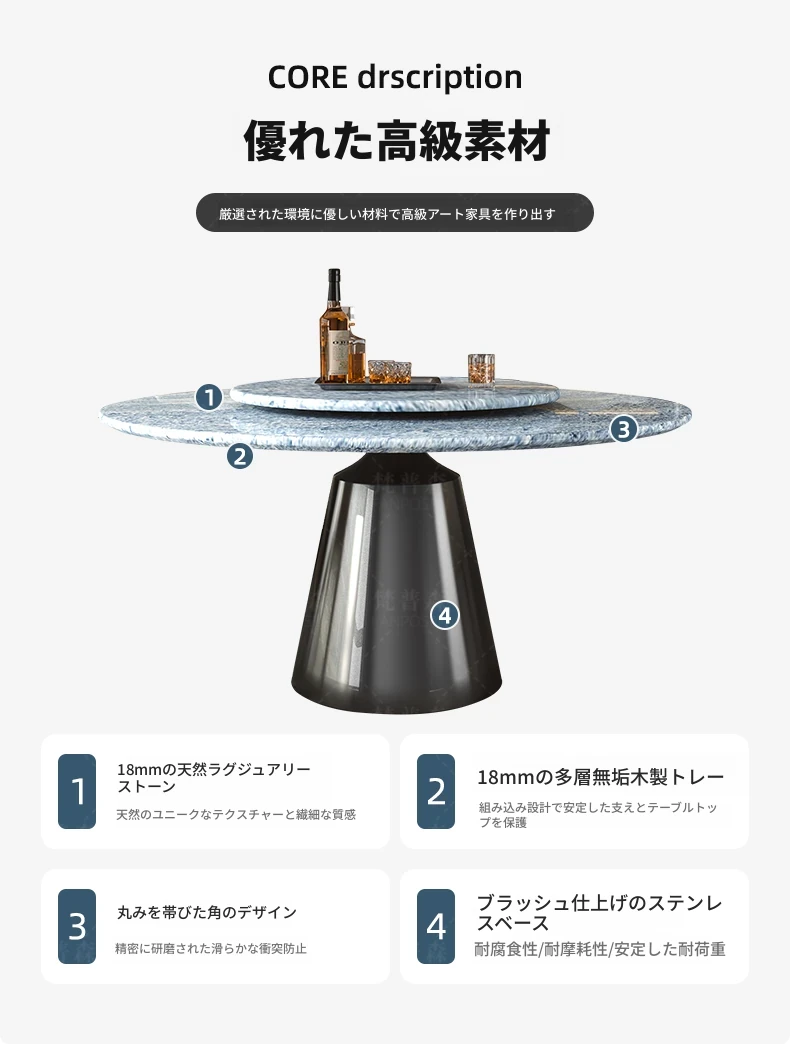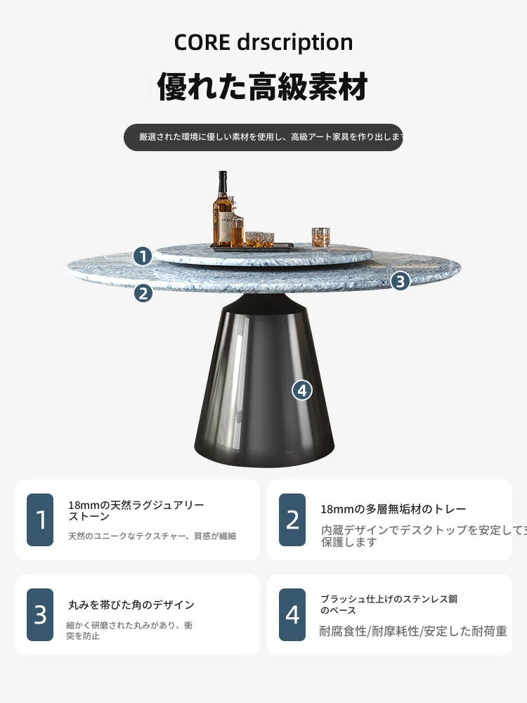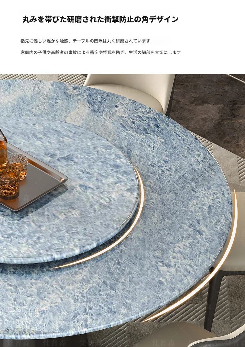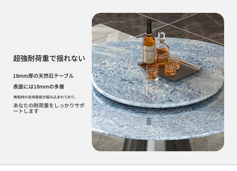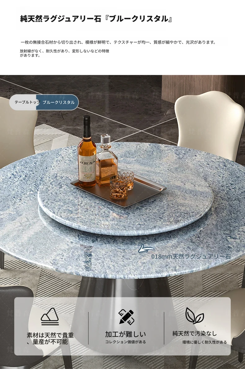 輸入ブルークリスタル天然ラグジュアリーストーンダイニングテーブル+回転盤 【偽物は10倍返し】