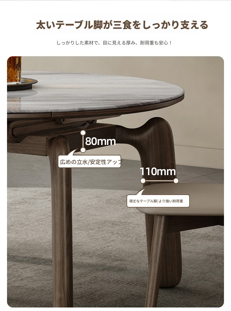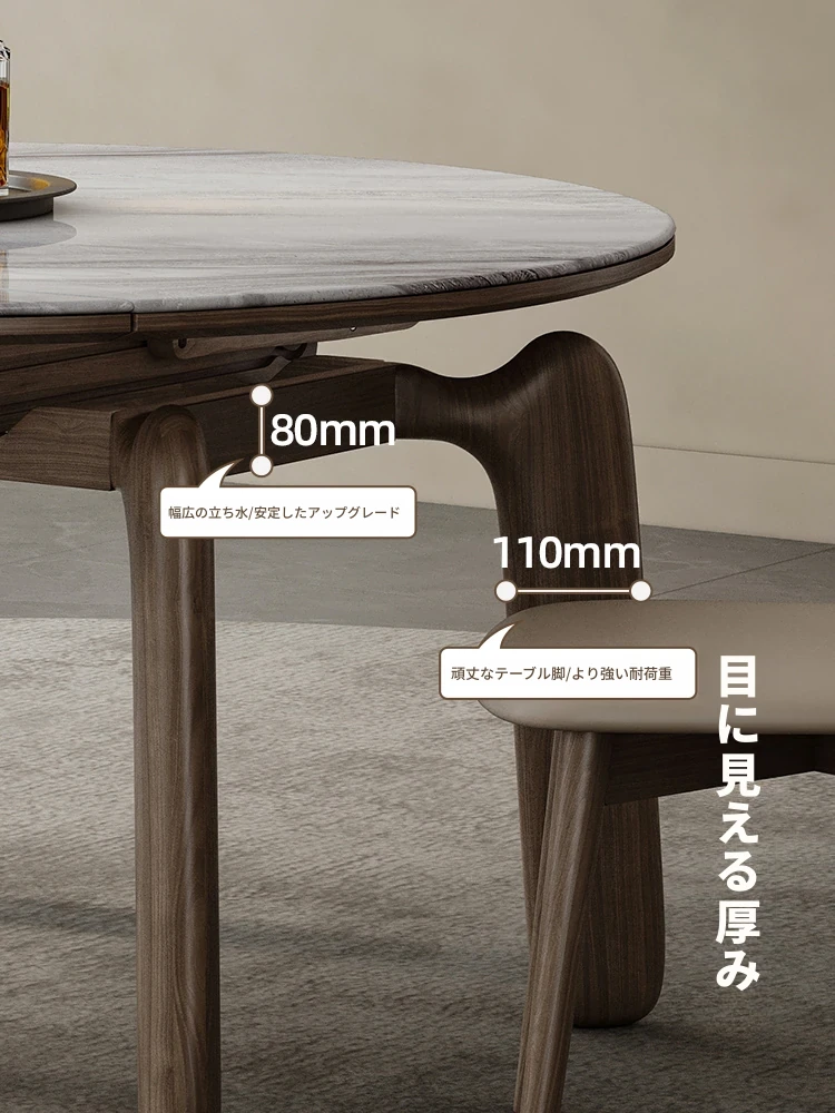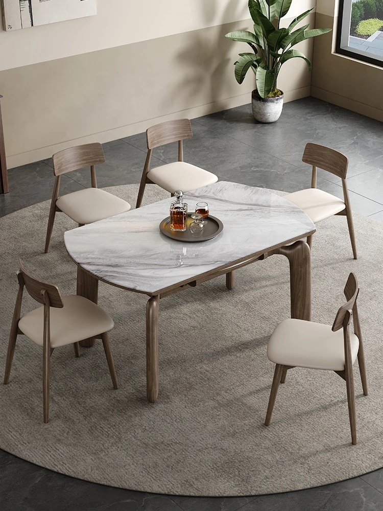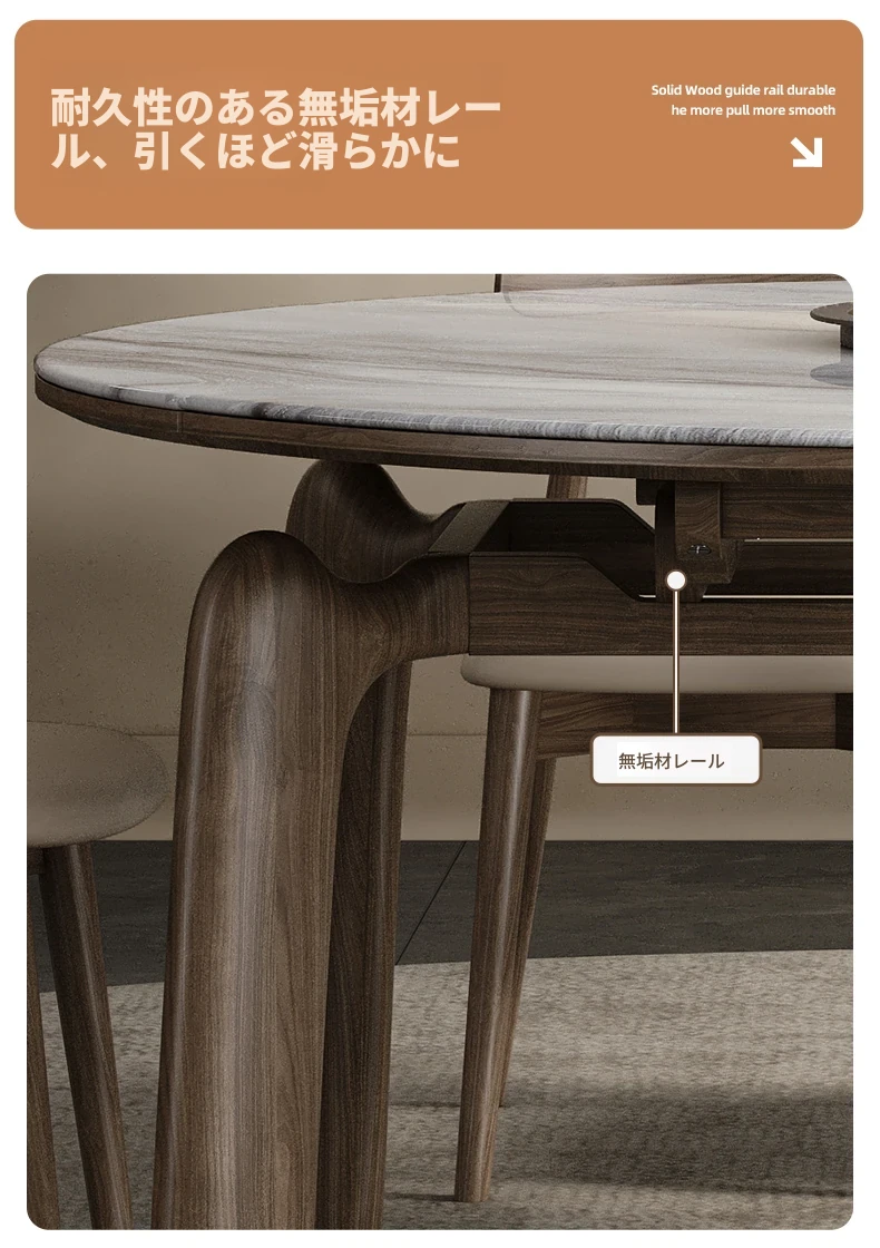 ヴァンプソン天然大理石のダイニングテーブル - 四角から丸に変形!現代的で高級感あふれるデザイン、無垢材とミクロクリスタルストーンの組み合わせで、食卓をスタイリッシュに演出します。