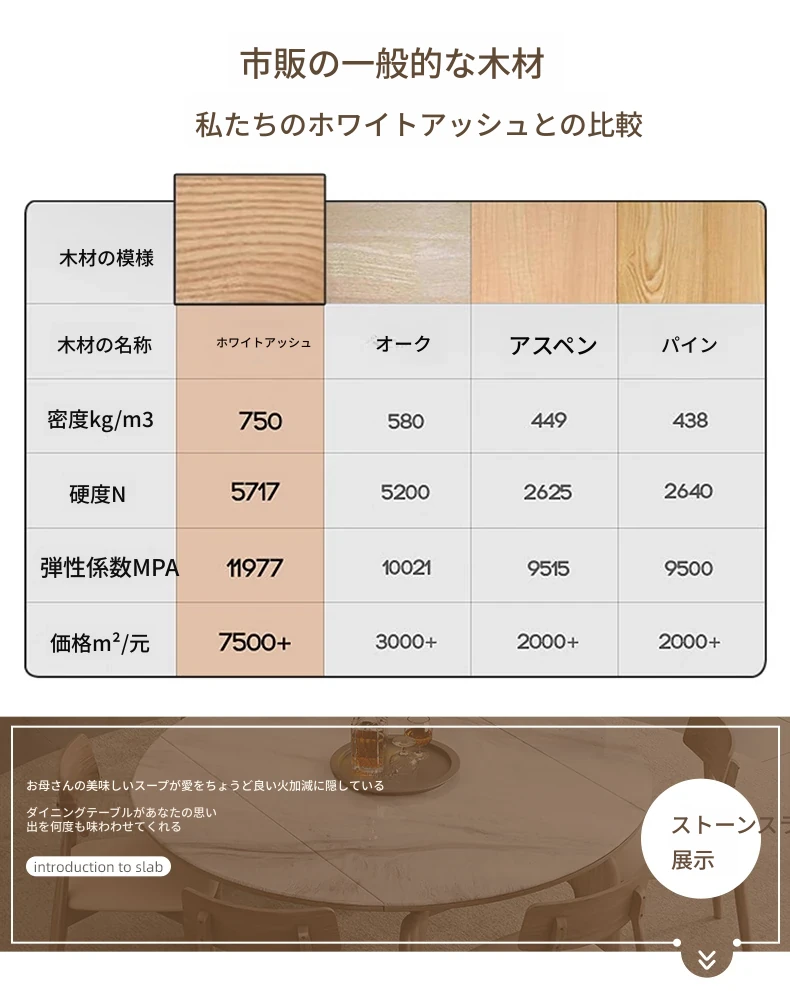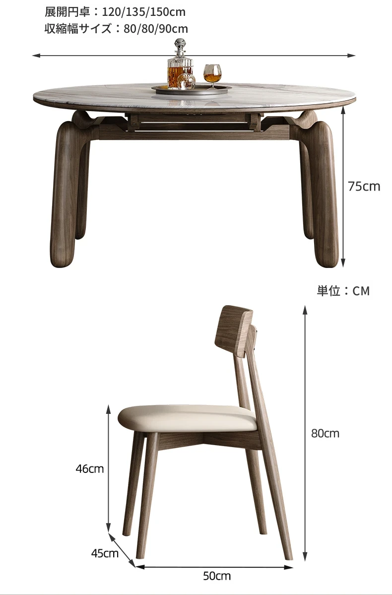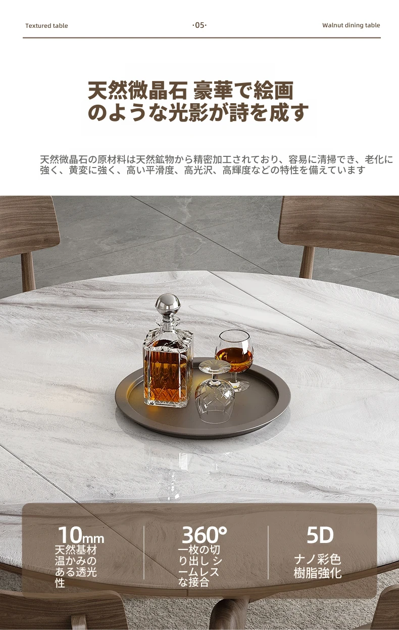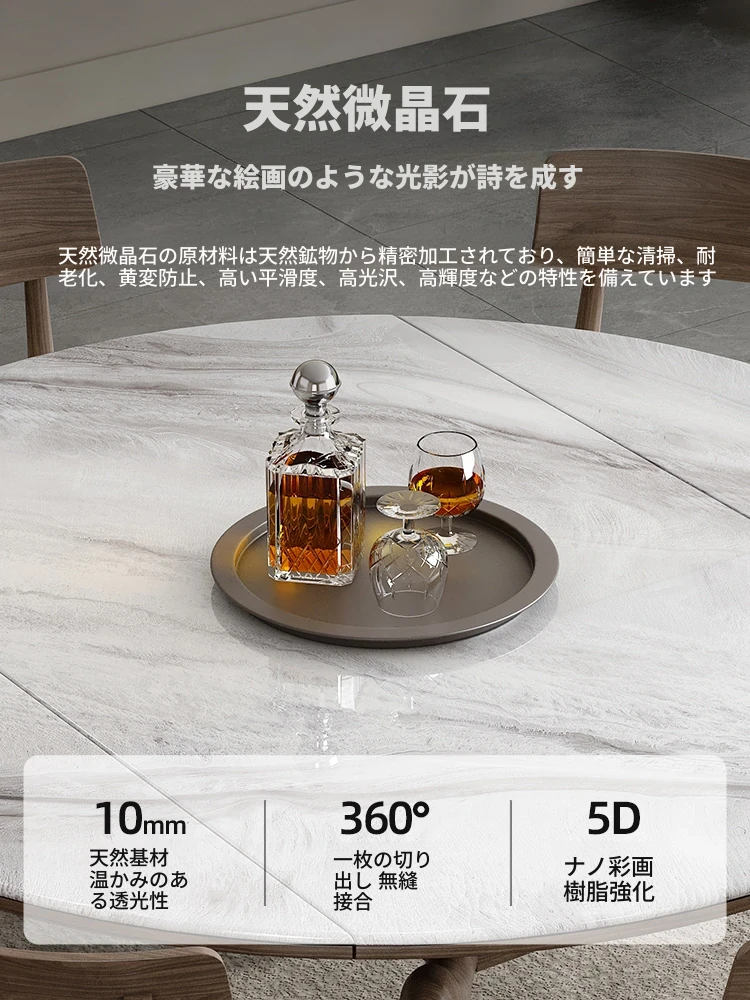 天然ミクロクリスタルストーン伸縮ダイニングテーブル