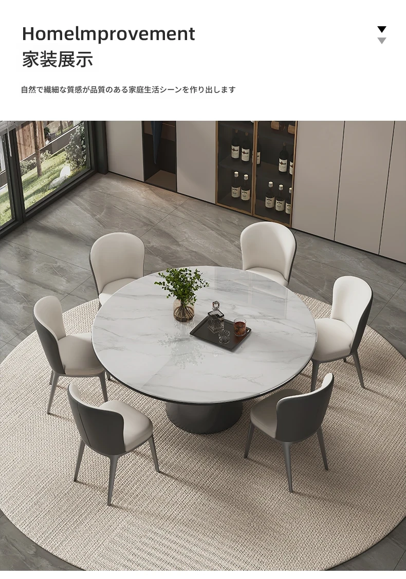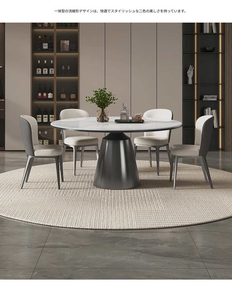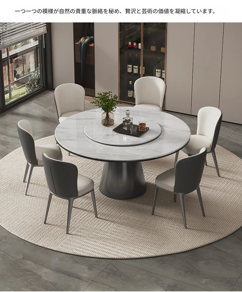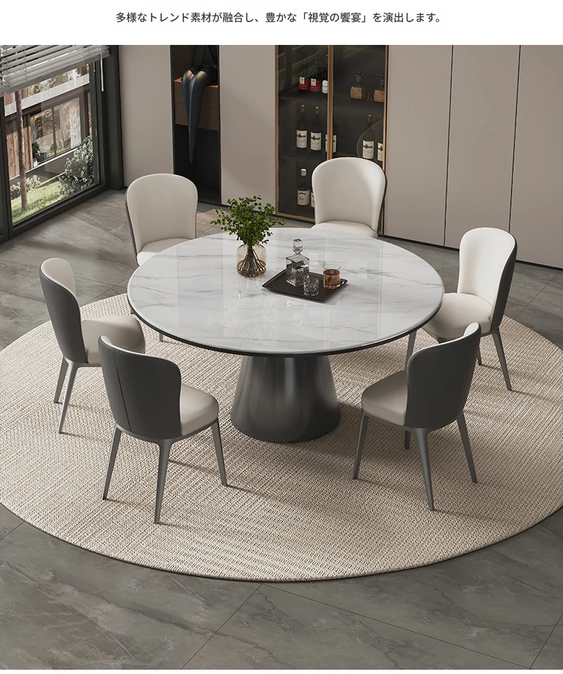 ヴァンプソン天然大理石ダイニングテーブルセット 2025年新作!ラグジュアリーな雰囲気を演出する円形テーブルと高級感あふれる微晶石素材。おしゃれな食卓を実現する高端ダイニングテーブル!