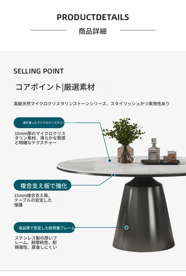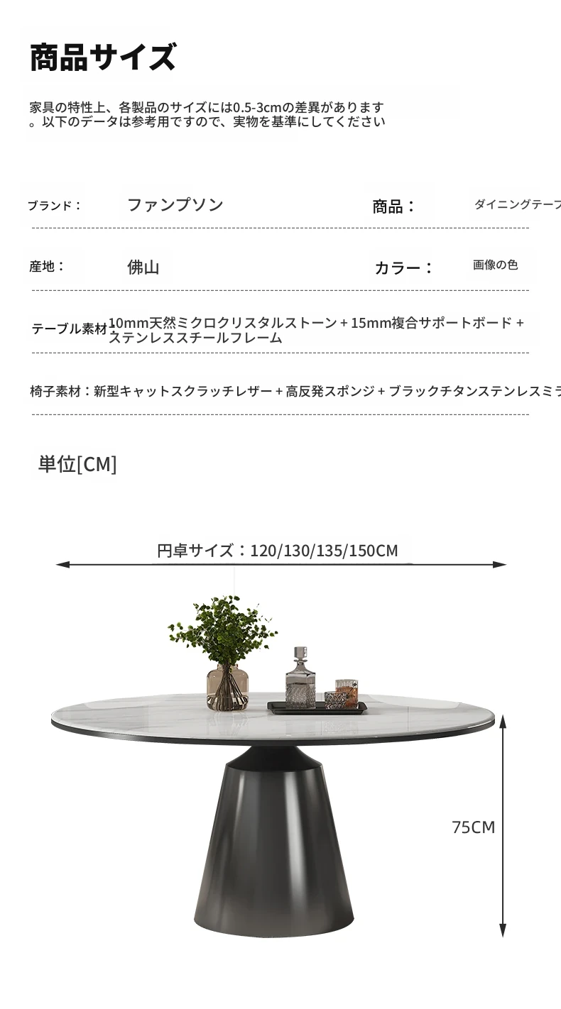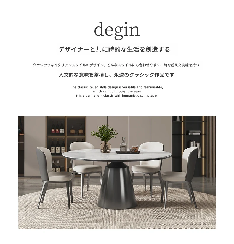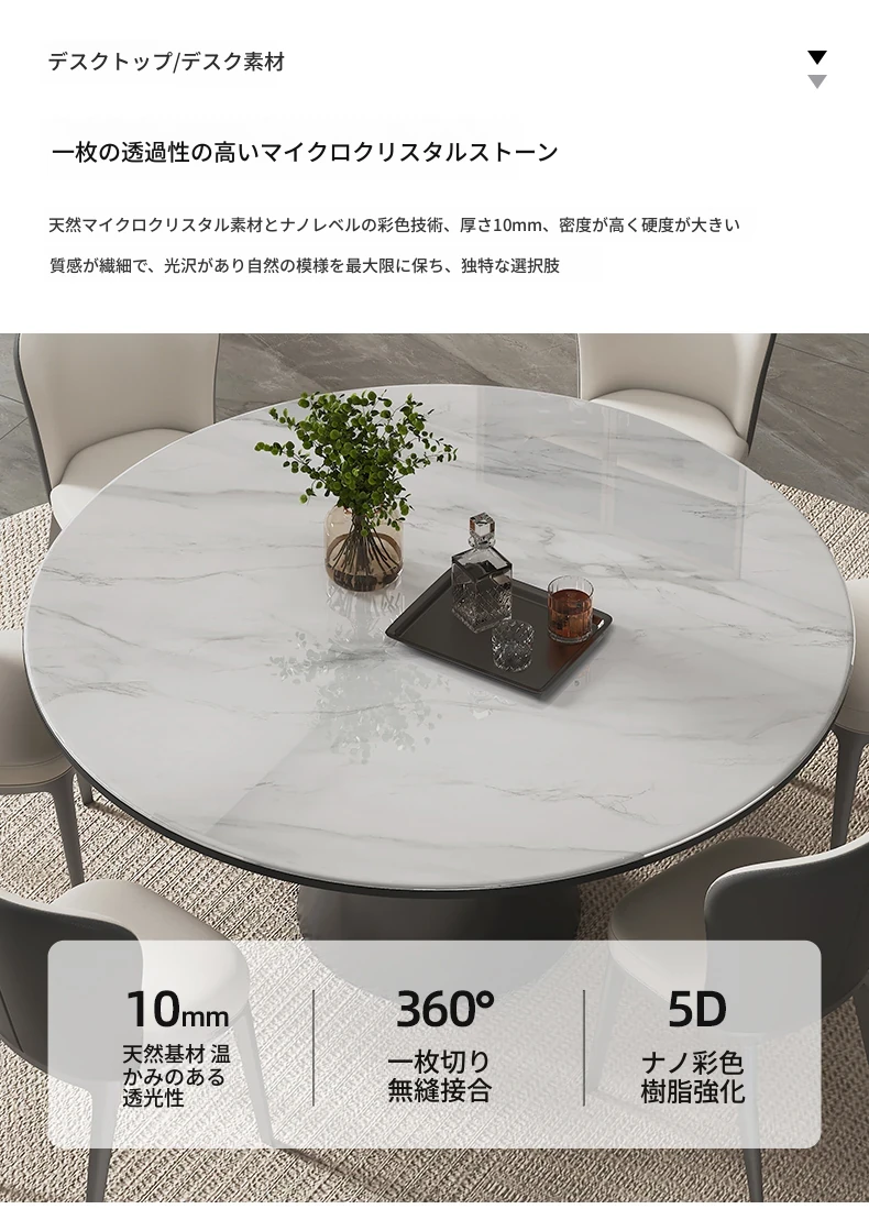 ヴァンプソン天然大理石ダイニングテーブルセット 2025年新作!ラグジュアリーな雰囲気を演出する円形テーブルと高級感あふれる微晶石素材。おしゃれな食卓を実現する高端ダイニングテーブル!
