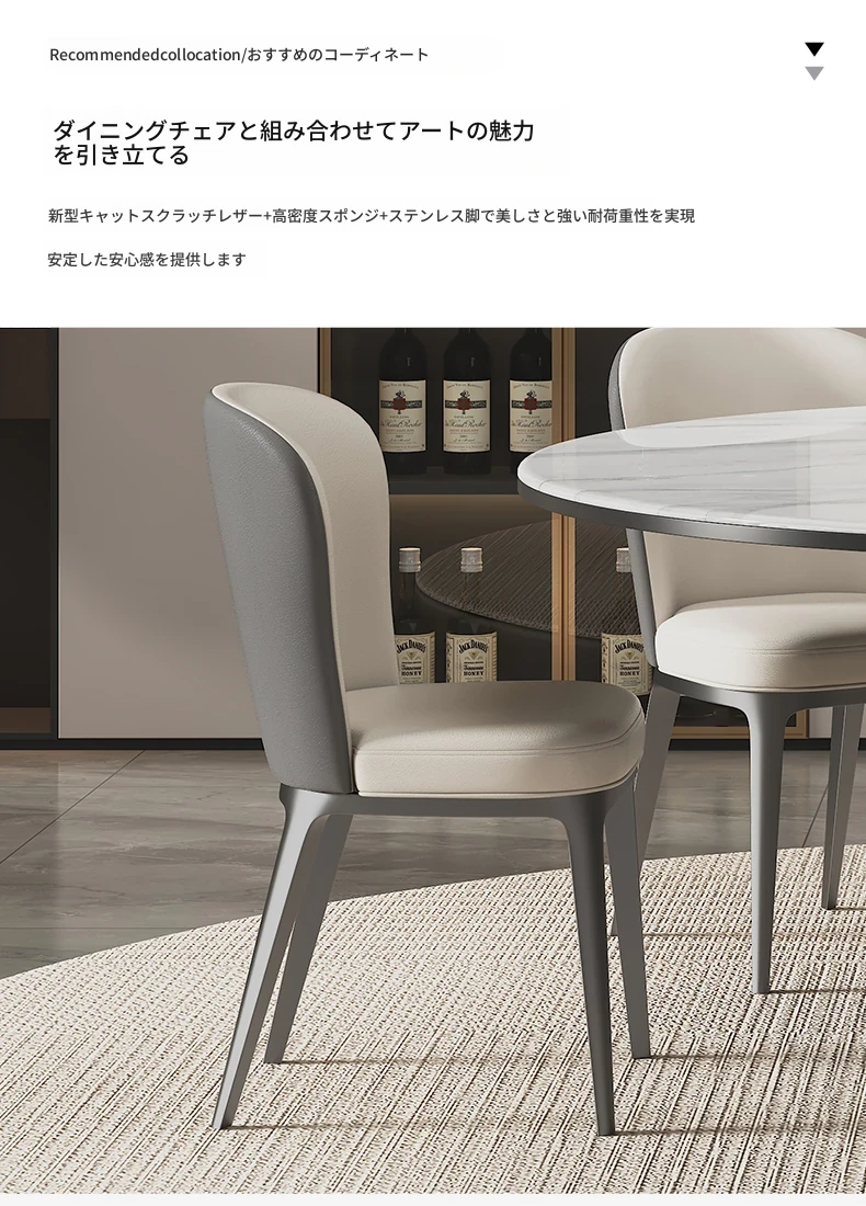 【大花白】天然微晶石ダイニングテーブル+高級キャットスクラッチ皮製ダイニングチェア*6