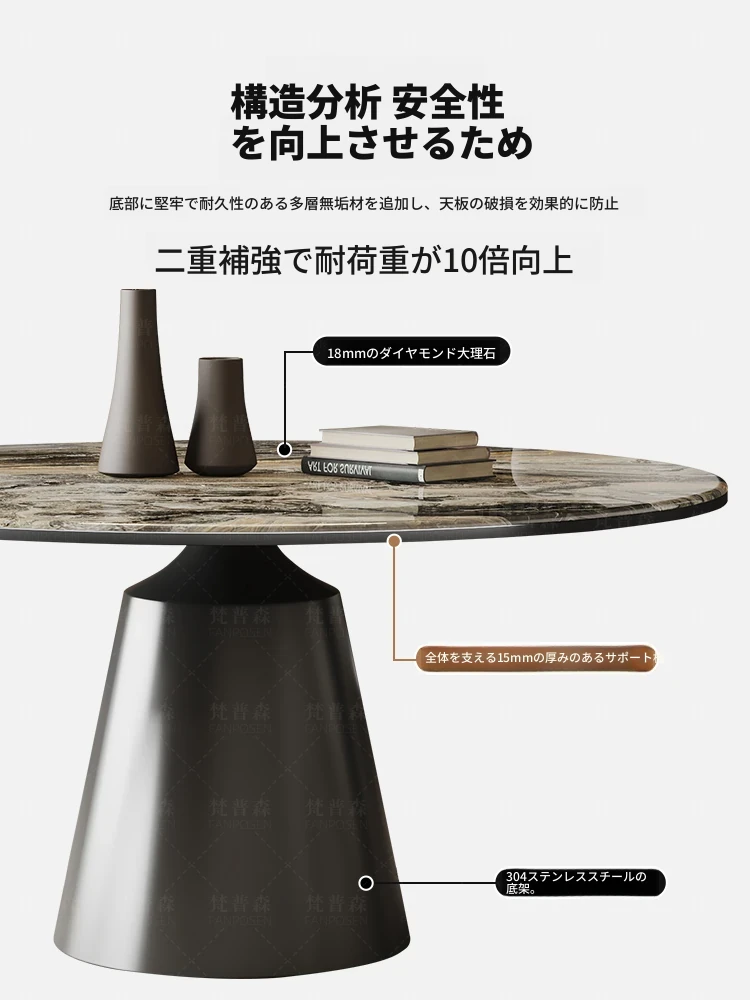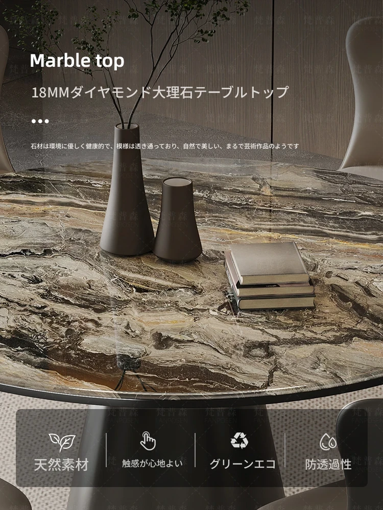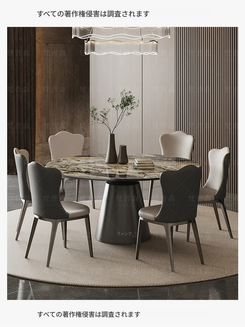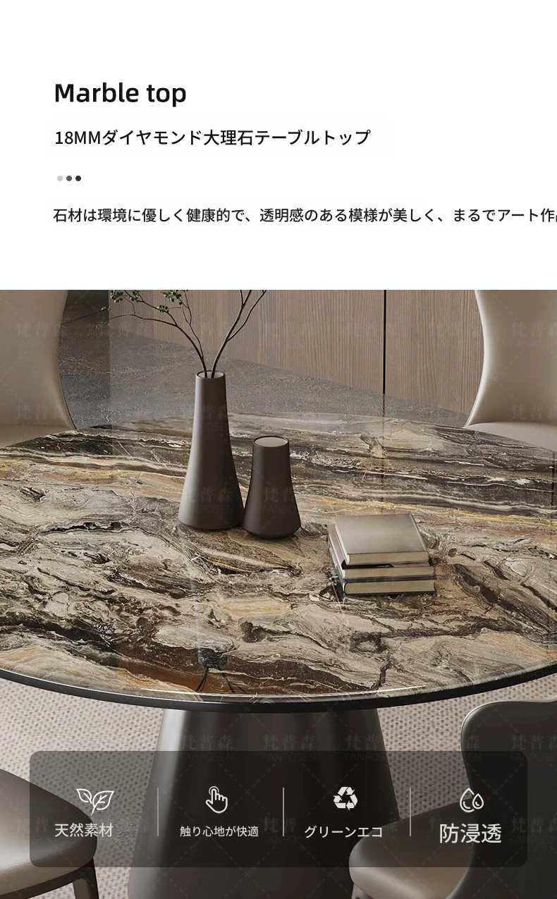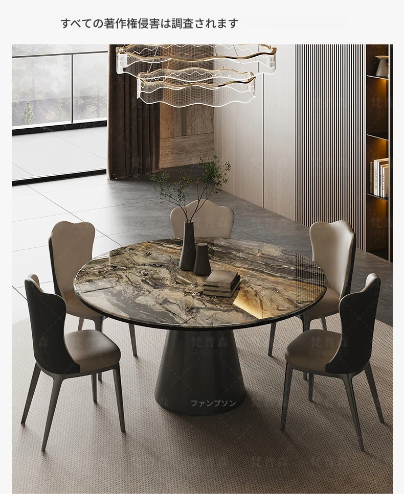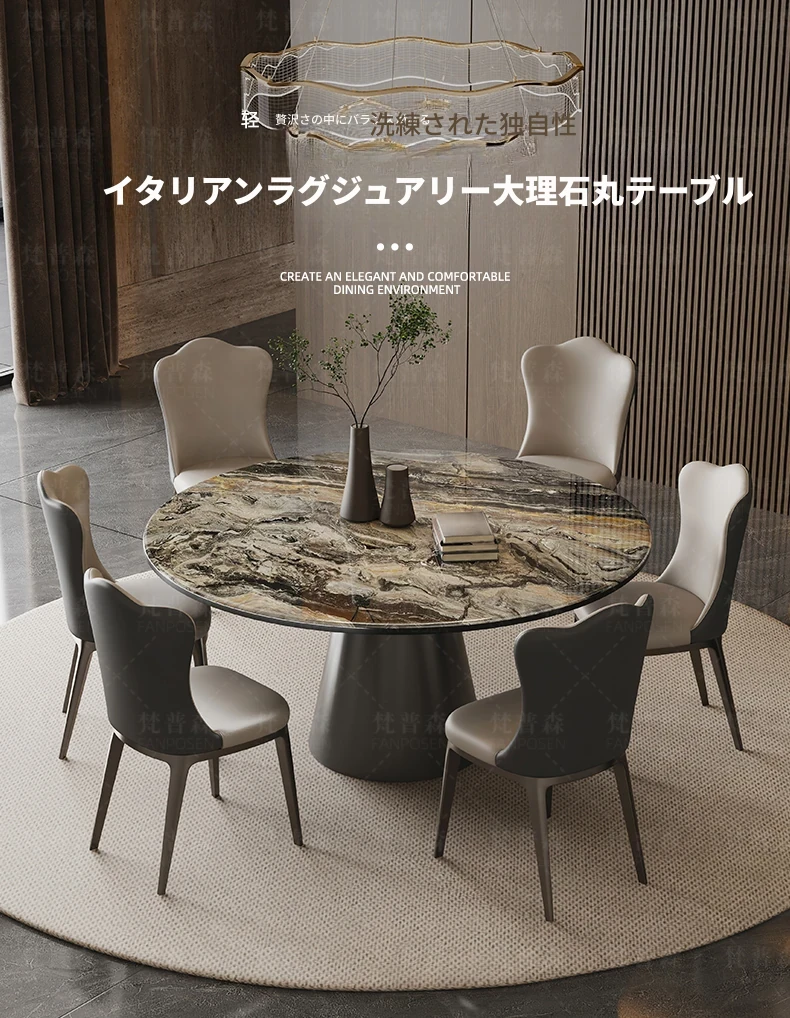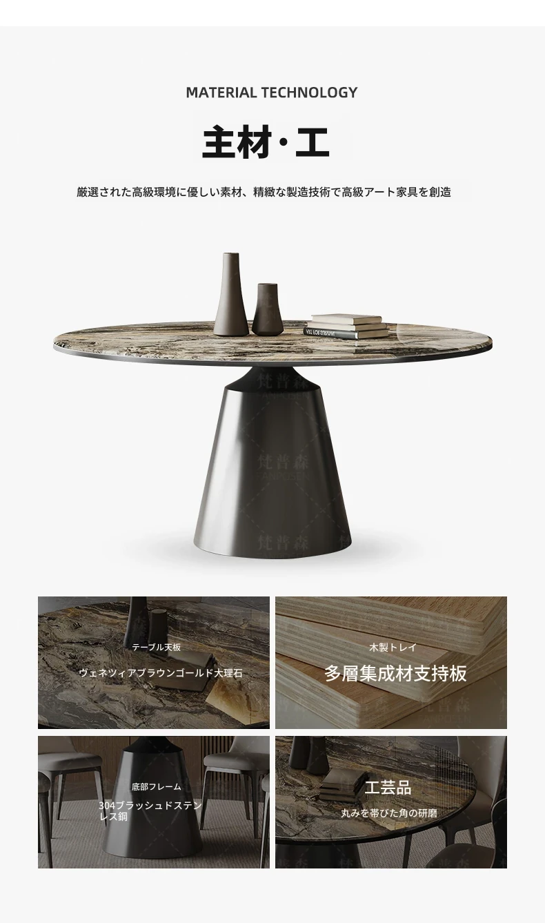 ヴァンピソン ヴェネチアブラウン大理石ラウンドダイニングテーブル 軽やかさと高級感を兼ね備えた回転式テーブル 家庭用に最適なラウンドテーブルセット