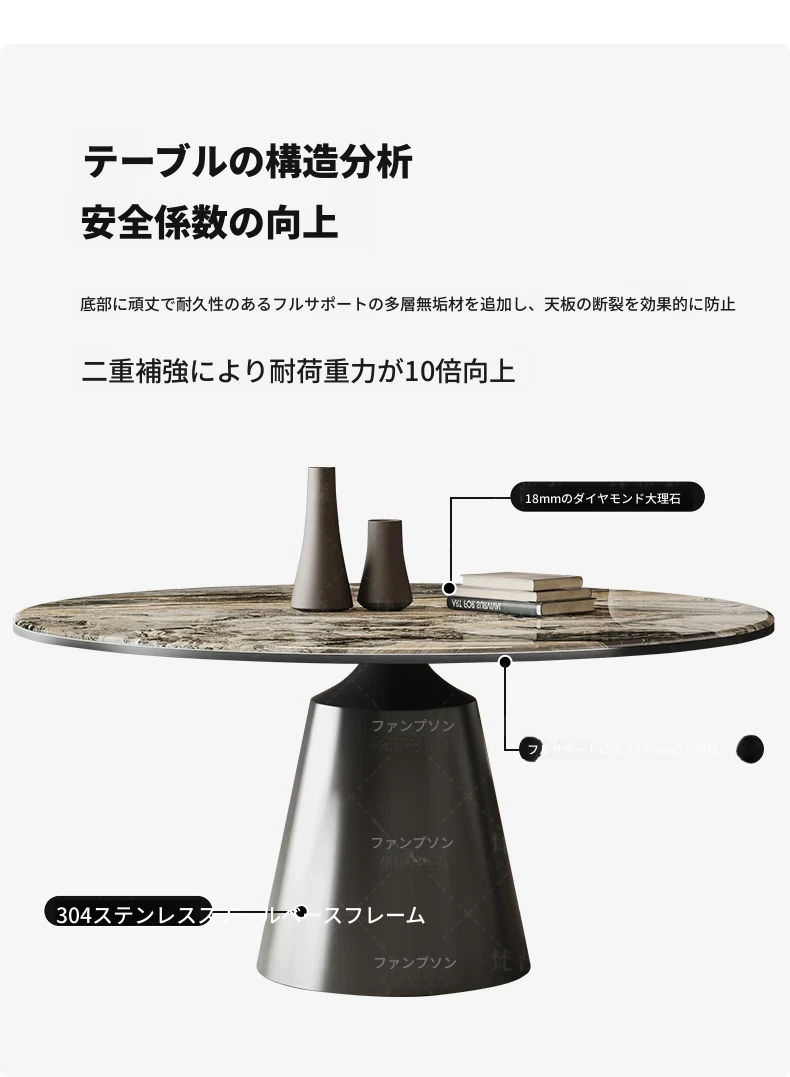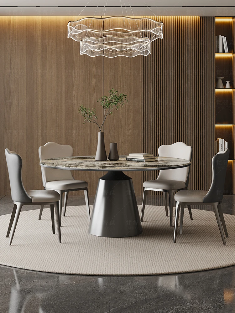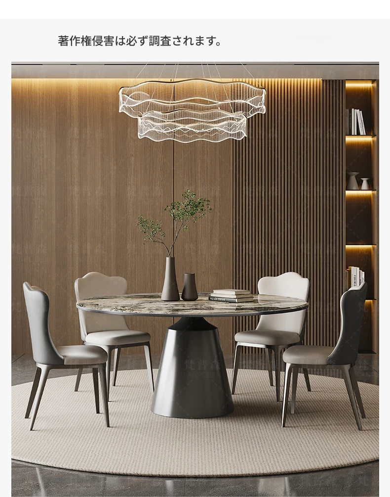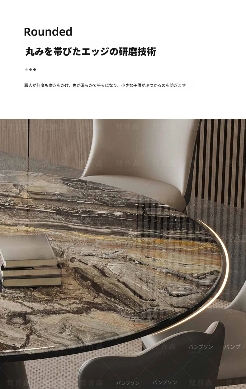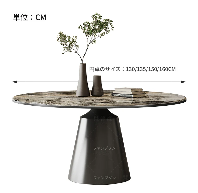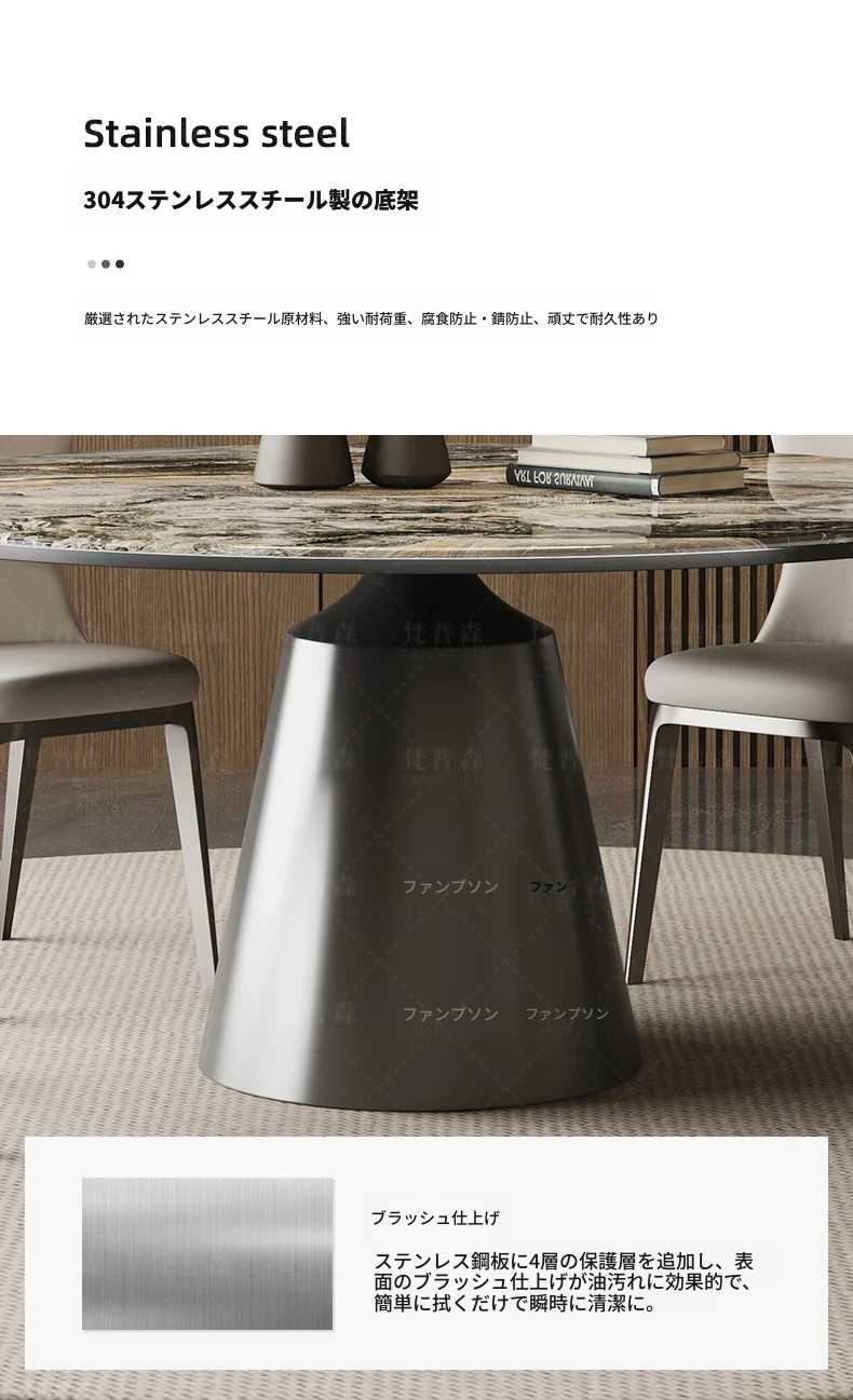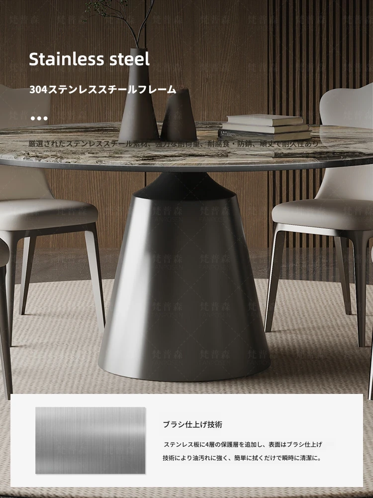 ヴァンピソン ヴェネチアブラウン大理石ラウンドダイニングテーブル 軽やかさと高級感を兼ね備えた回転式テーブル 家庭用に最適なラウンドテーブルセット