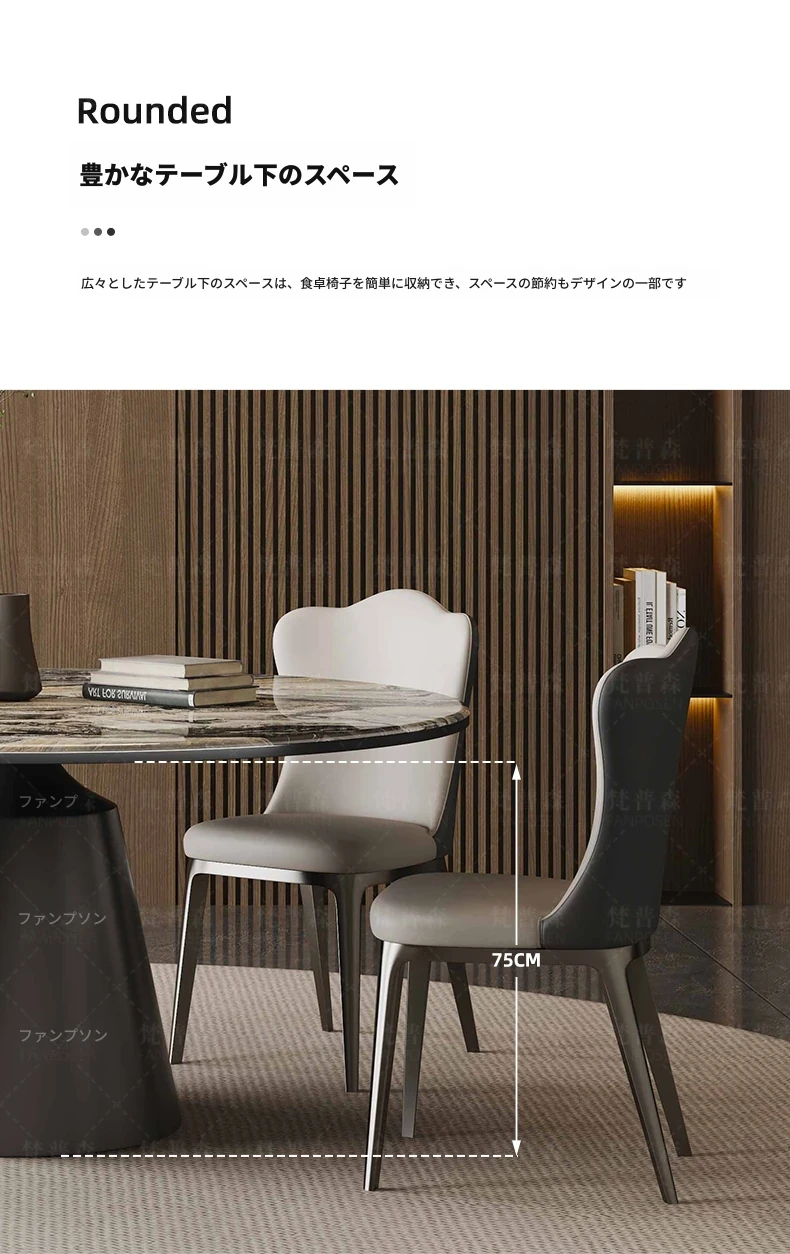 ヴェネツィアブラウン大理石円卓+特級キャットスクラッチレザー椅子*6