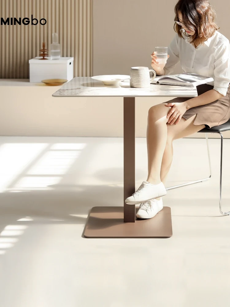北欧スタイルのシンプルな岩板製スクエアクリーム風ダイニングテーブル - 家庭用、アウトドアバルコニー、オフィスミーティング、カフェにも最適!