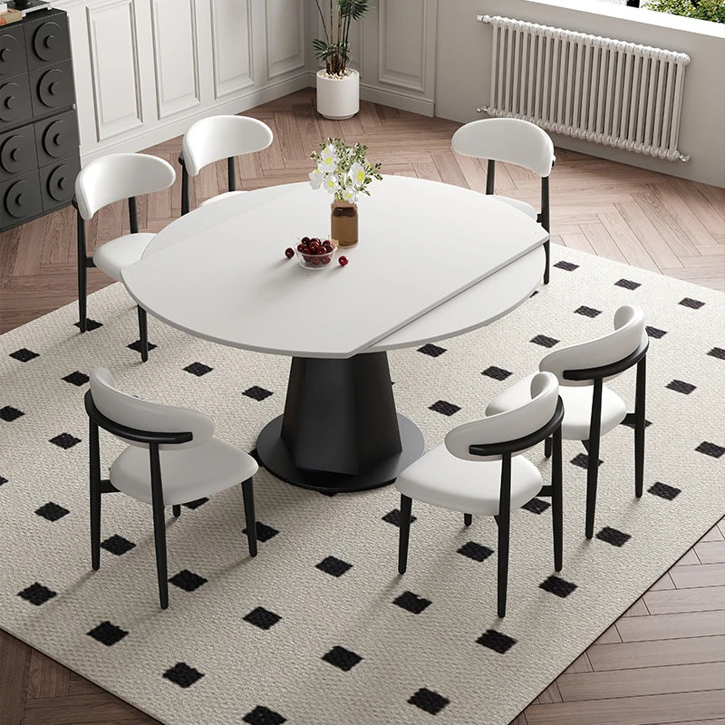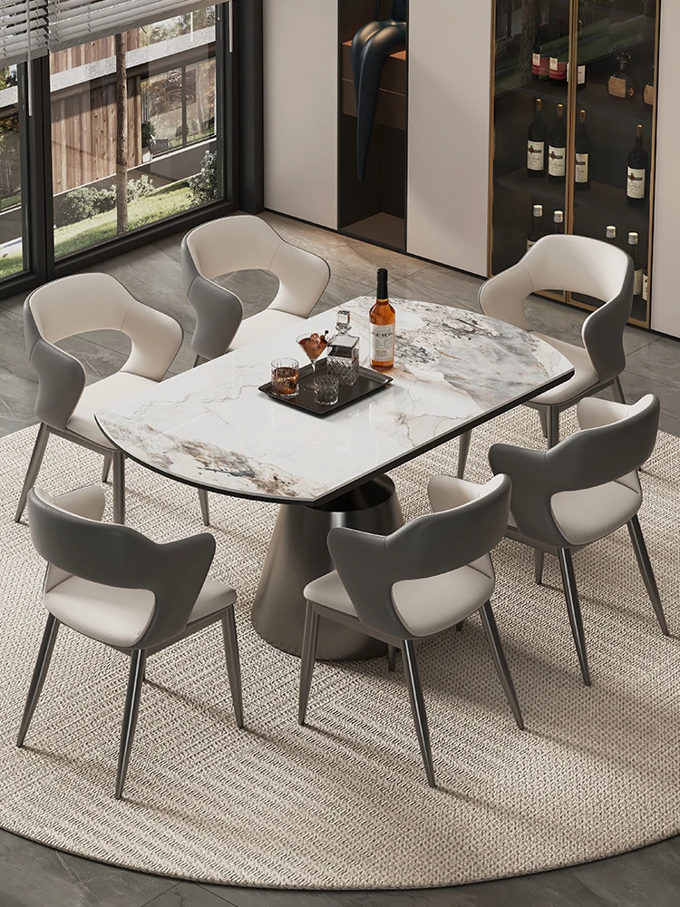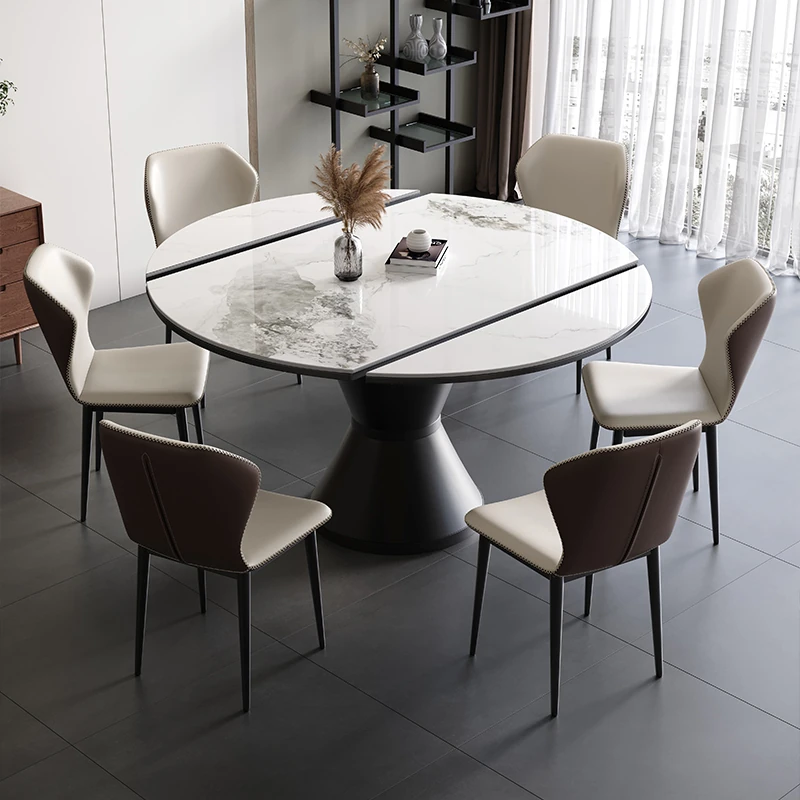 伸縮可能な高級感あふれる岩板ダイニングテーブル&チェアセット、丸型・四角型の両用デザイン!小さなお部屋にもぴったりな微晶石と超晶石を使用したファンプレッサンの円卓で、洗練された食卓を演出します。