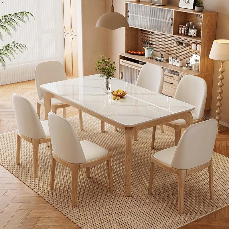 2025年新作!スタイリッシュな岩板ダイニングテーブル&チェアセット - 小型住宅に最適な現代的なミニマリズムと軽やかなラグジュアリー感。快適な食事体験をお楽しみください!