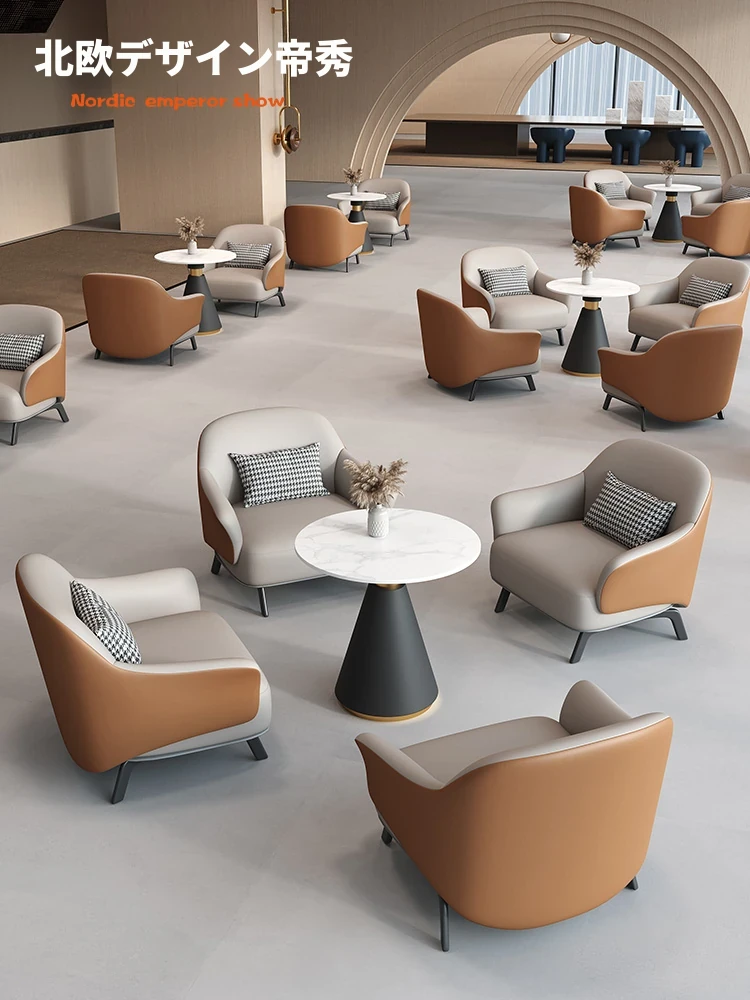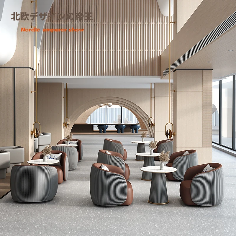 モダンなラウンジスペースに最適!高級感あふれる会議テーブルと椅子のセット - 美容院や不動産オフィスの受付にもぴったり。リラックスした雰囲気でお客様をお迎えします。