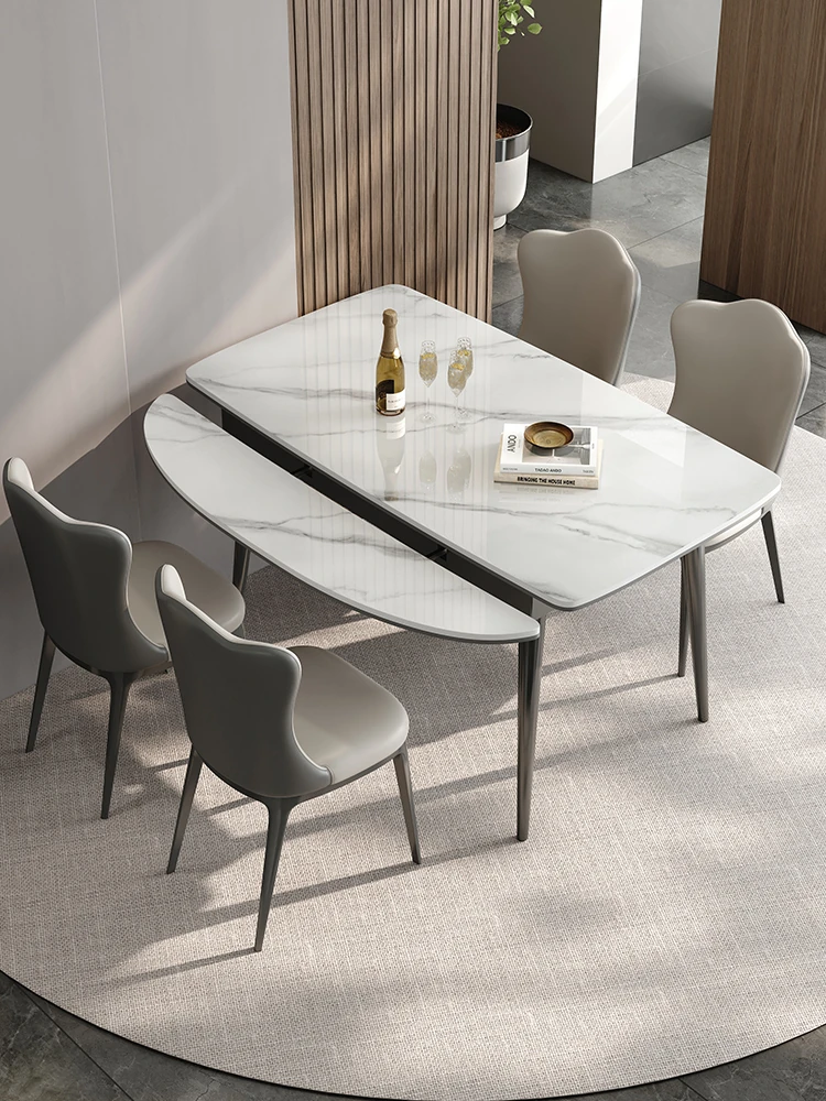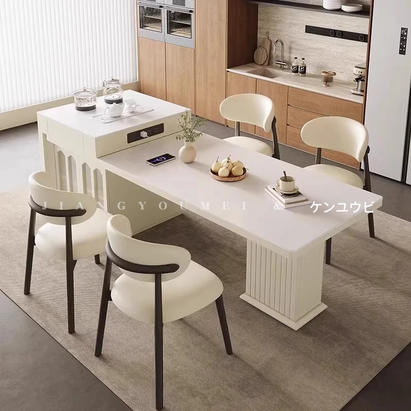 2025年新作!伸縮式岩板ダイニングテーブル - 高級感溢れる長方形デザイン、家庭用に最適。電磁調理器付きで、使い勝手も抜群!佛山発の軽奢スタイルで、食卓を華やかに演出します。