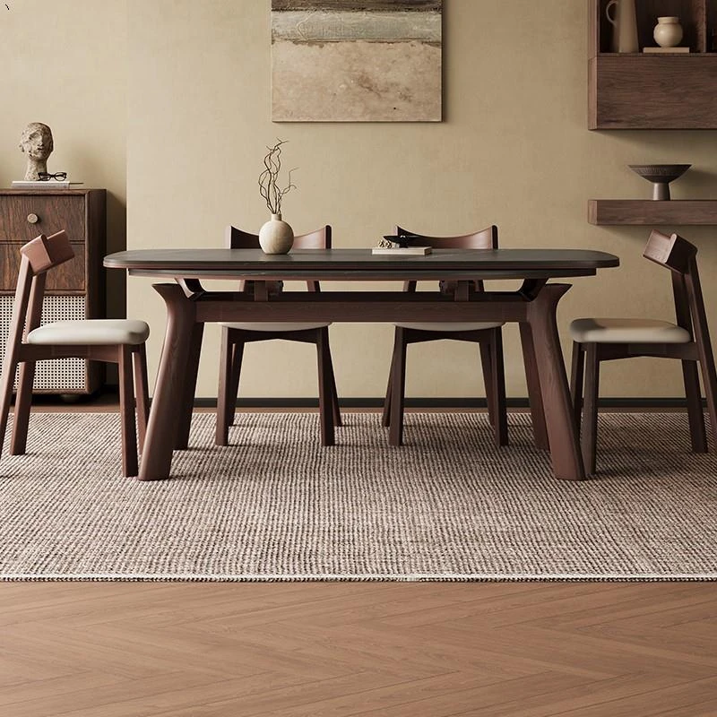 黒胡桃色の侘寂風リアルウッドエクステンションダイニングテーブル&チェアセット - 高級感あふれるシンプルで洗練されたデザイン、家庭用にぴったりな上質な食卓を演出します。