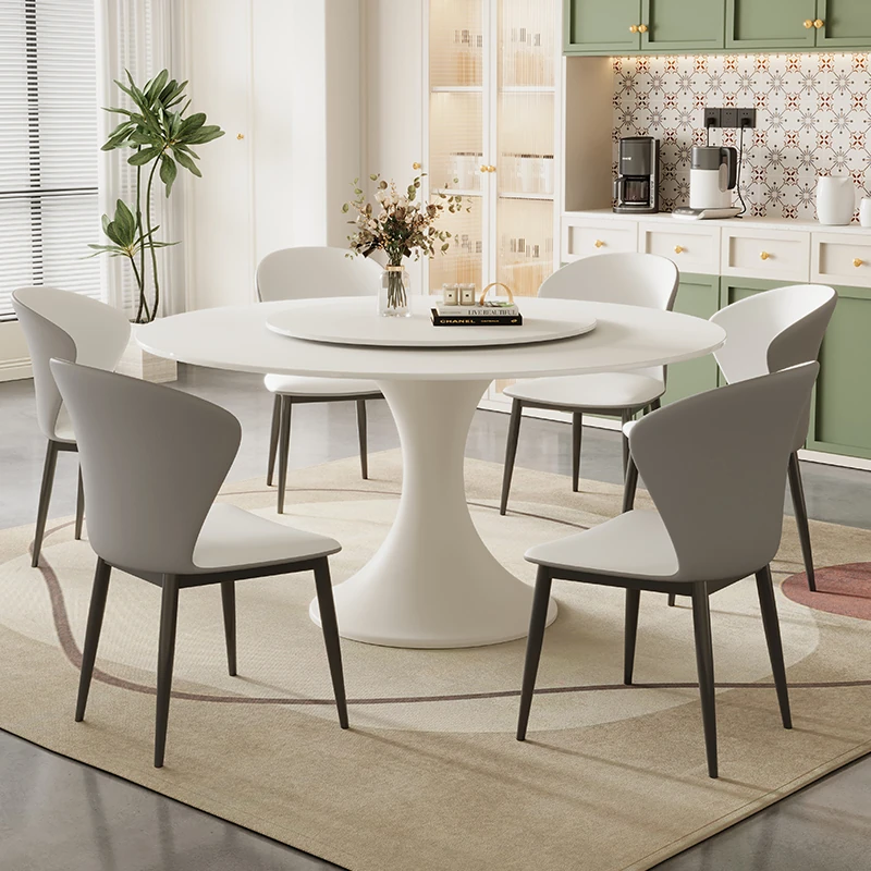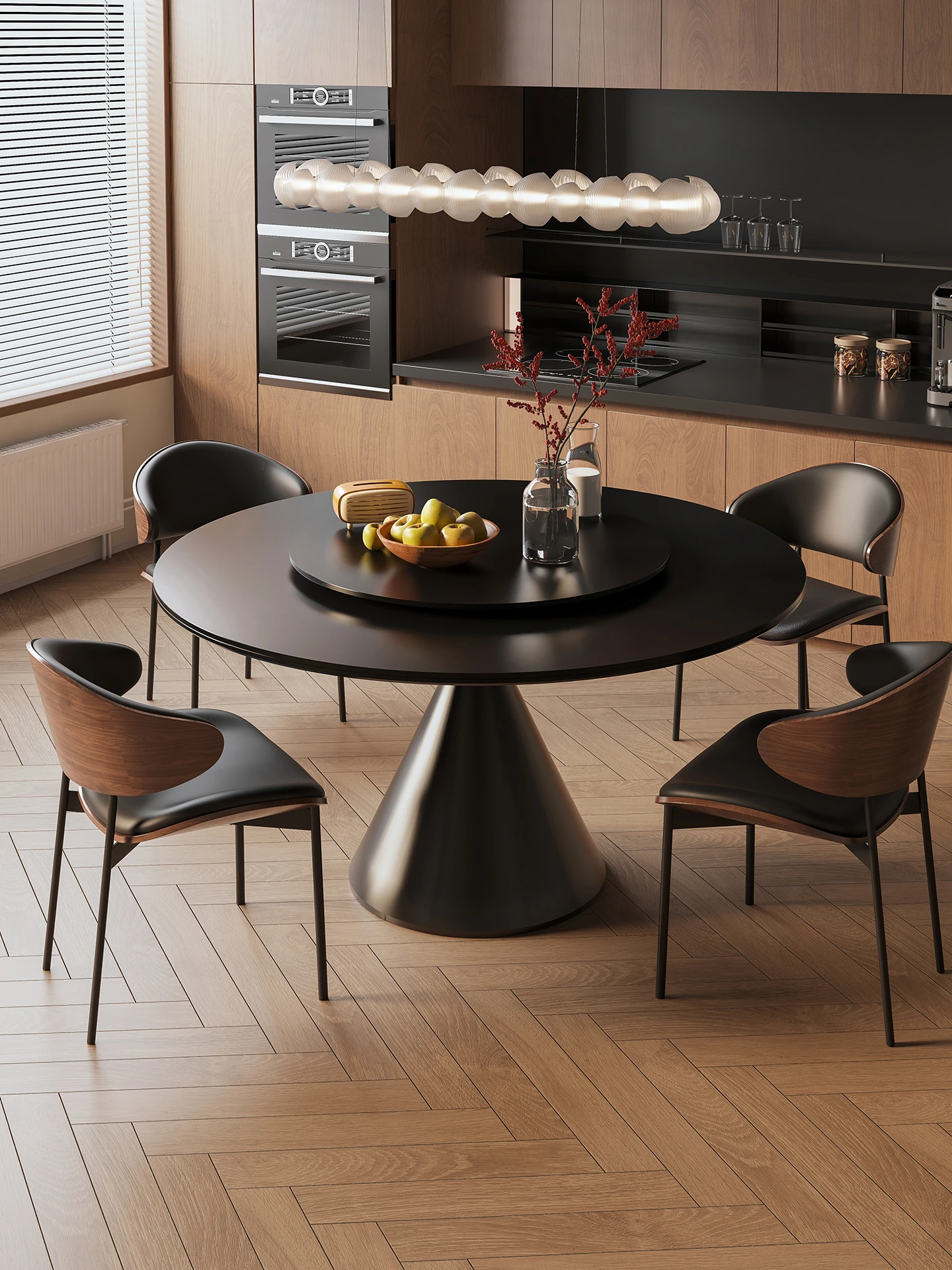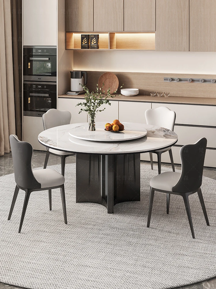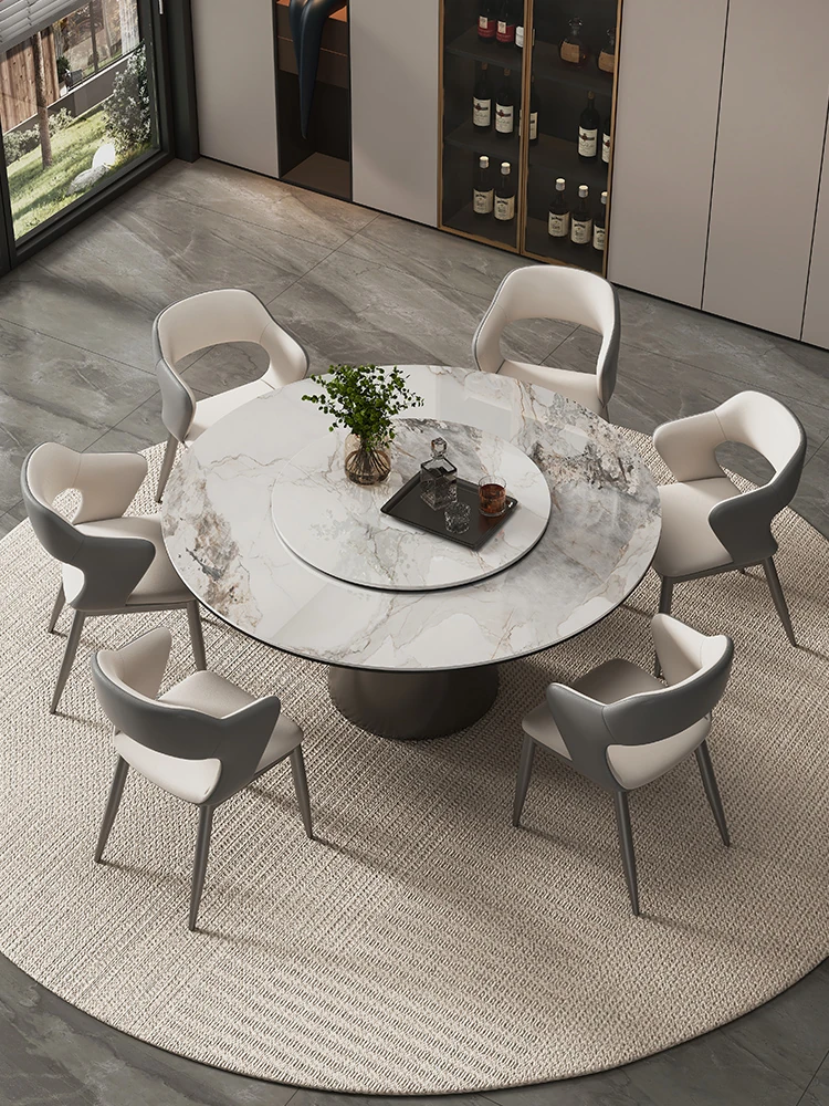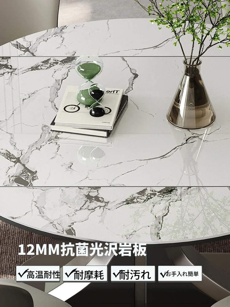 モダンシンプルな円形岩板ダイニングテーブル|イタリアンミニマリズムの軽やかな高級感|回転盤付きで便利な家庭用テーブル!
