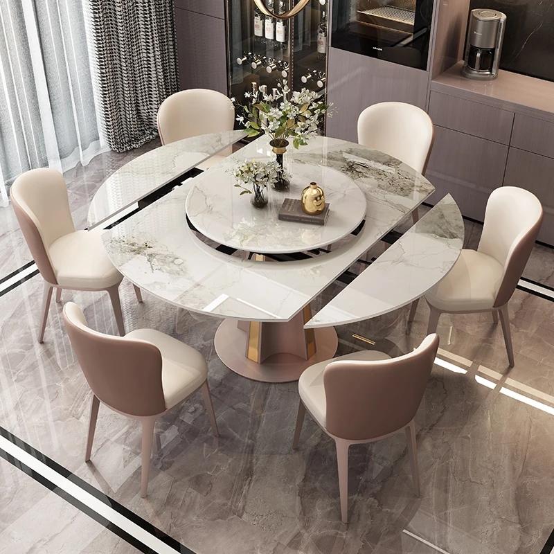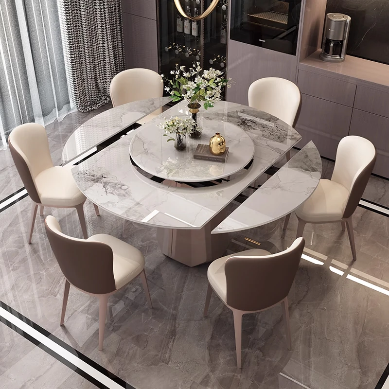 イタリア製のラグジュアリー軽量スラブ回転ダイニングテーブル、モダンでシンプル、伸縮可能、電磁調理器付きの埋め込み回転盤、家庭用円形テーブル。快適な食卓を演出します!