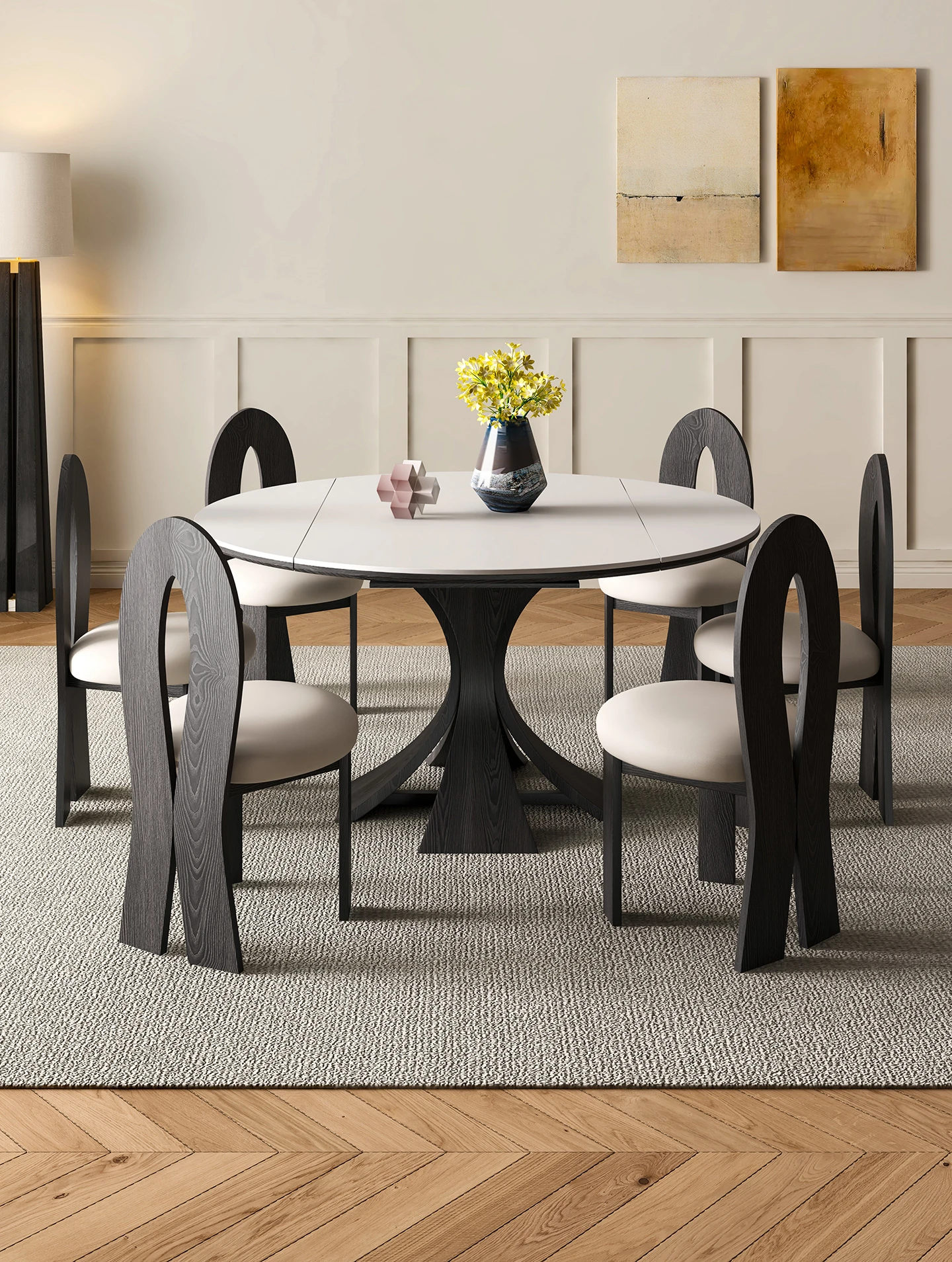 モダンでシンプルな変形可能な円形ダイニングテーブル - 軽やかなラグジュアリーを感じる家用小型テーブルと椅子セット、2025年新作!