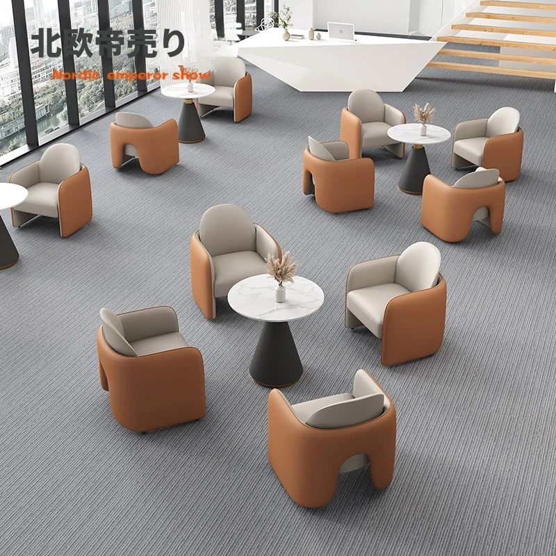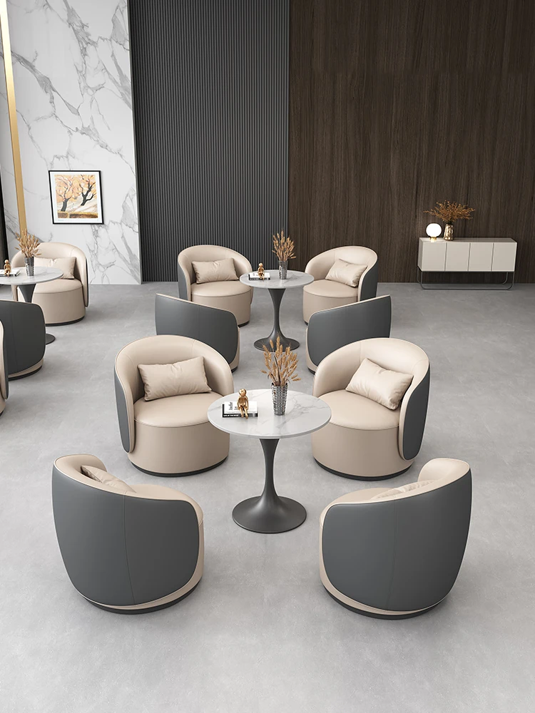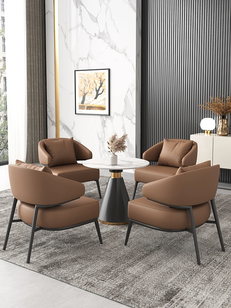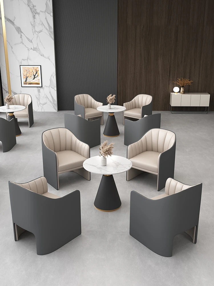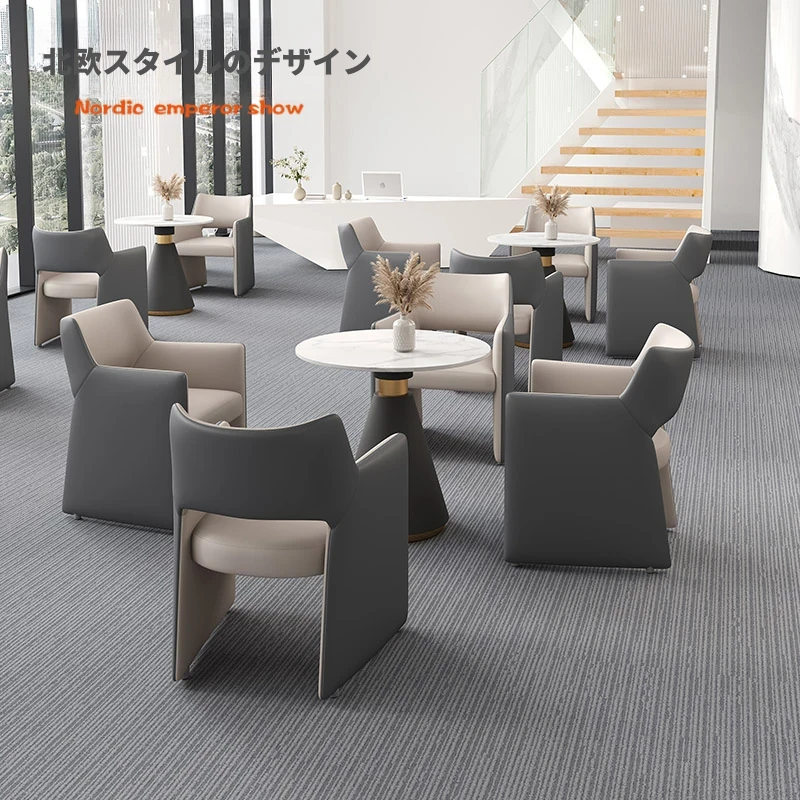 モダンでラグジュアリーな休憩エリアに最適!洽談テーブルとチェアのセット - 美容院や営業所の受付にもぴったり。お客様を心地よくお迎えするためのスタイリッシュなデザインです。