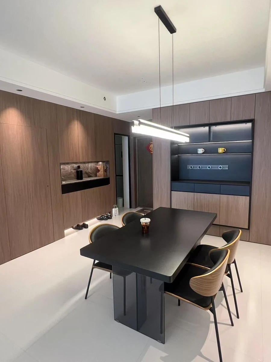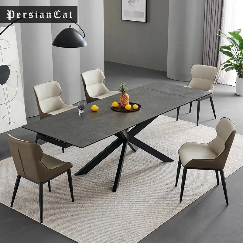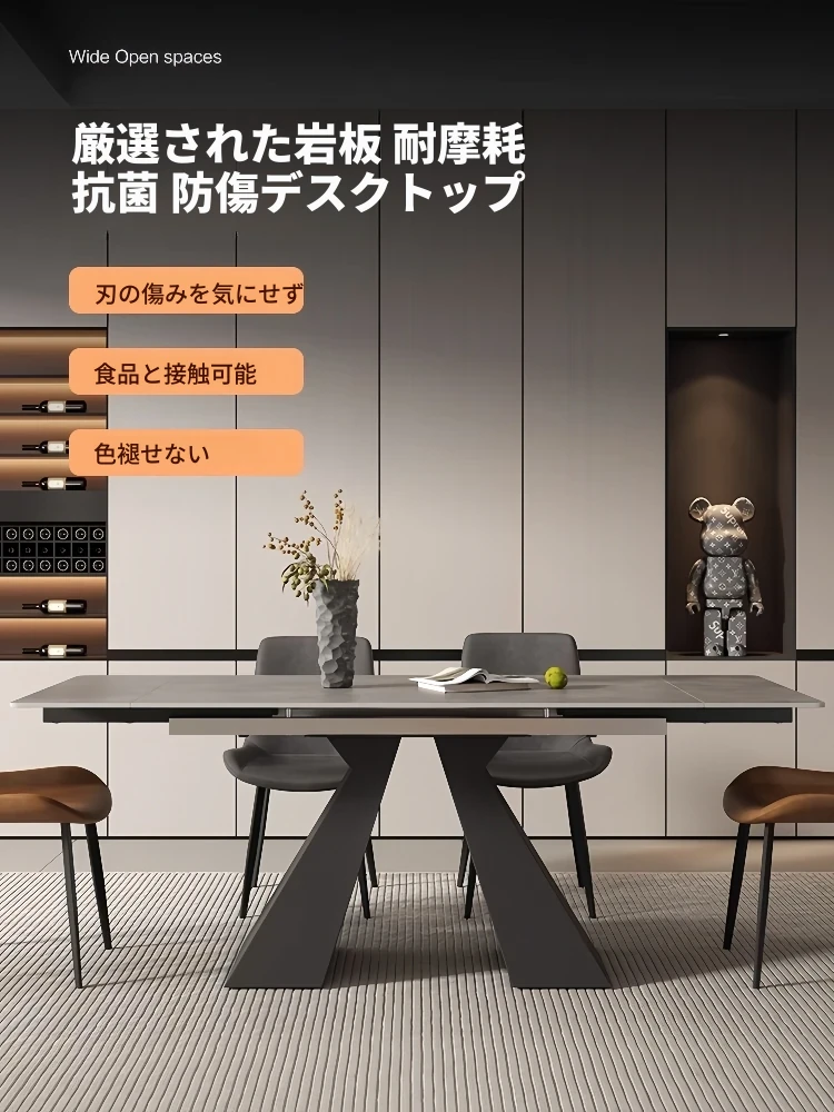 イタリアンスタイル新作!伸縮式の岩板ダイニングテーブル - モダンでシンプルなデザイン、北欧風の椅子と組み合わせた小型住居向けの長方形テーブル。おしゃれな空間を演出し、家族や友人との特別なひとときを提供します!