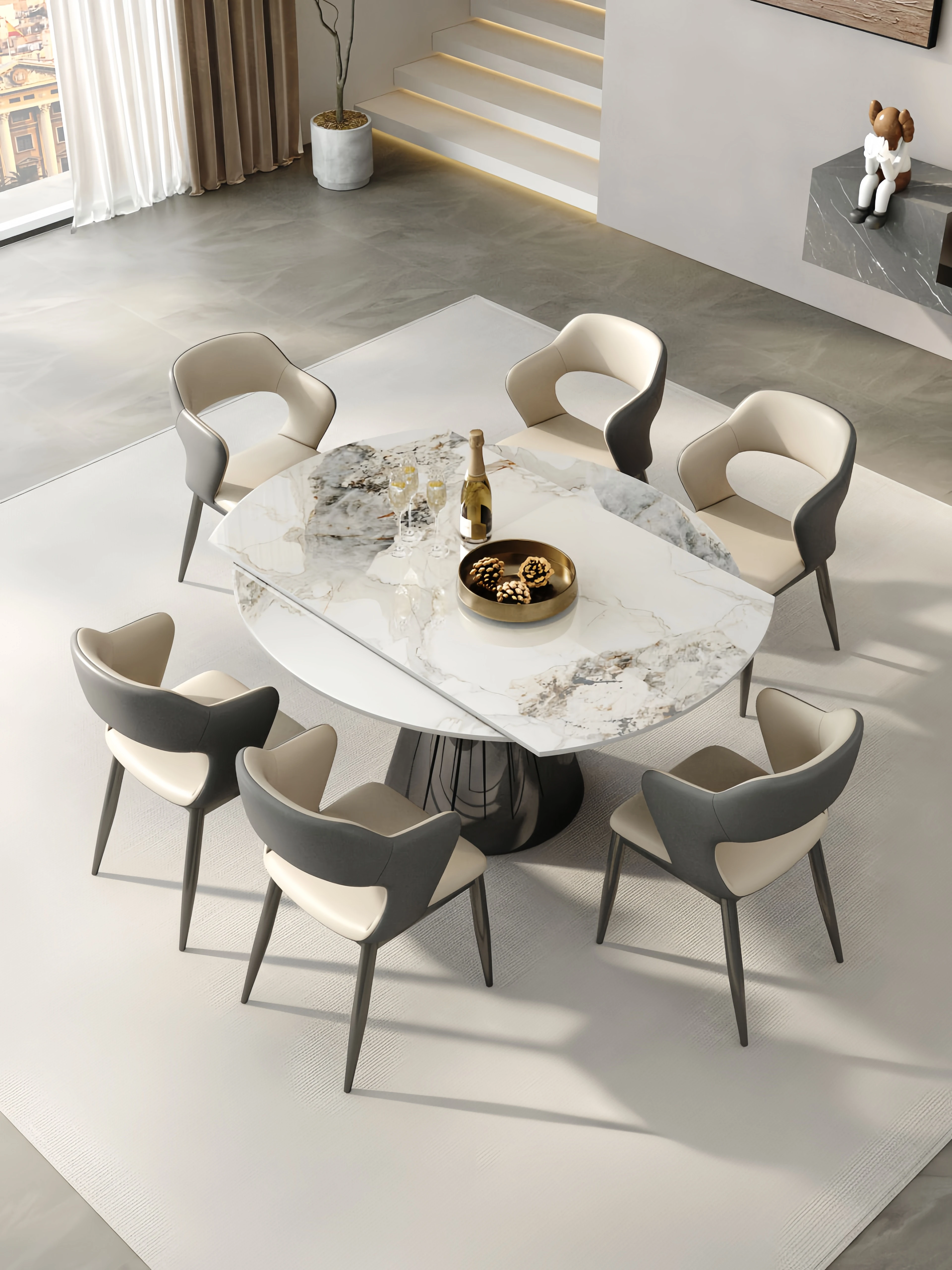 ヴァンプソン イタリアンミニマリズム 伸縮式 ストーンテーブル モダン シンプル 高級感漂う ラウンドダイニングテーブル