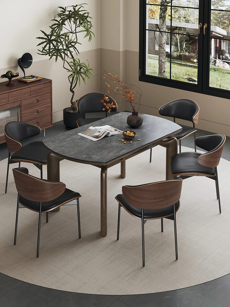 現代的シンプルデザイン!岩板伸縮式天然木製ダイニングテーブル - 丸型と四角型の2WAY、狭いスペースにもぴったりな折りたたみ式テーブルと椅子のセット。おしゃれで機能的な食卓を実現!