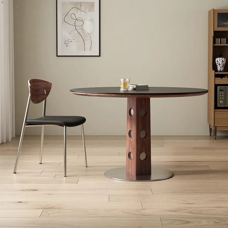 途遠の中華風丸型デリフォン岩板ダイニングテーブル - ヴィンテージスタイルの無垢材使用、シンプルで小型の食卓に最適!おしゃれで機能的な丸テーブルで、心地よい食事のひとときをお楽しみください。