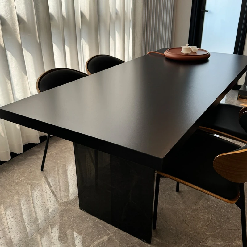 アクリル浮遊式下掛け岩板ダイニングテーブル - イタリアンミニマルデザイン、小型住宅向け、シックなブラック岩板長方形テーブルとチェアセットで、スタイリッシュな食空間を演出!