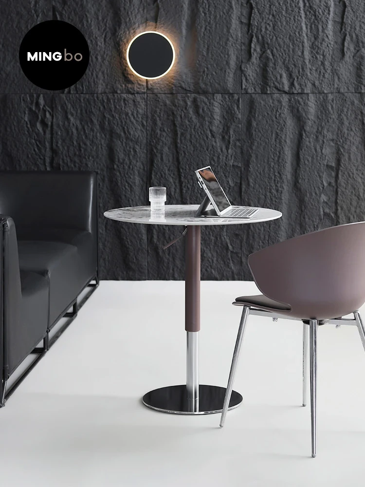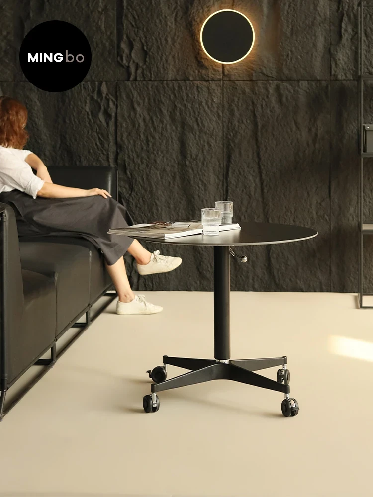 北欧モダン昇降式ラウンドテーブル|多機能コーヒーテーブル|リビング・バルコニー・カフェ・オフィスに最適!スタイリッシュで使い勝手抜群!