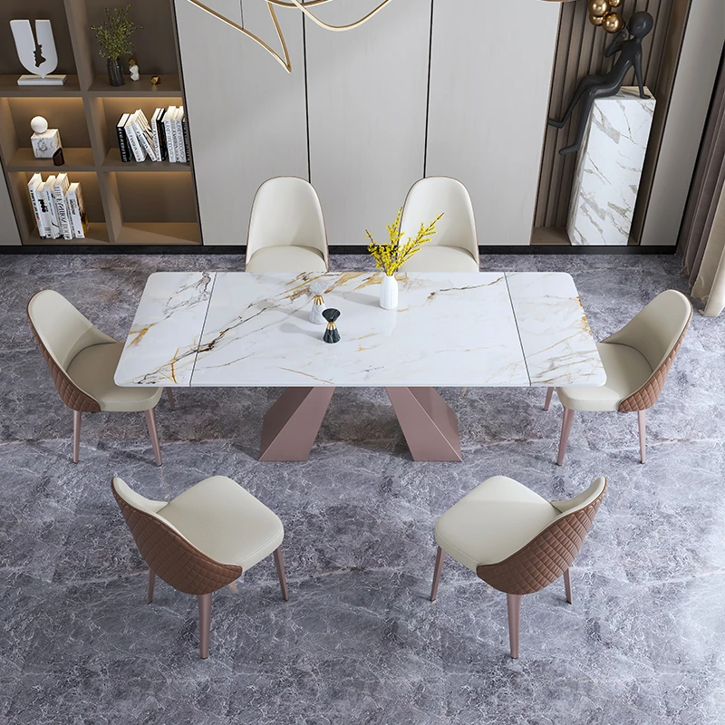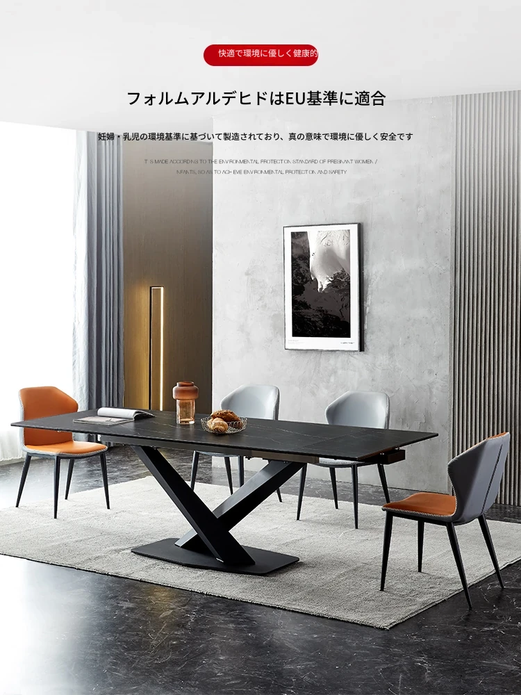 イタリアンスタイルの伸縮折りたたみ機能付きダイニングテーブル|モダンな長方形デザイン|ラグジュアリーな高品質テーブル&チェアセット|スペースに合わせて自由に伸縮可能!
