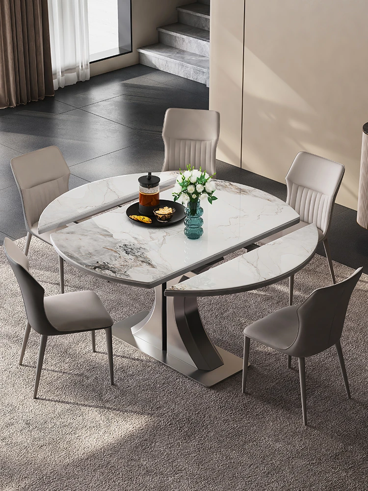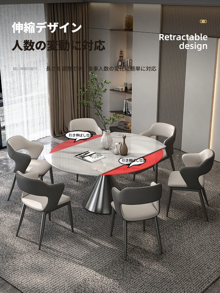 高級感溢れる円形伸縮式折りたたみダイニングテーブル|モダンデザインの多機能ラウンド&スクエア|スタイリッシュな家庭用岩板テーブル
