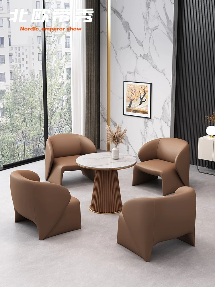 モダンでリッチな洽談テーブルセット - 休息エリアにぴったりな洗練されたデザイン!美容院や不動産営業所の接待にも最適。お客様を魅了する、快適さとスタイルを兼ね備えた一品!
