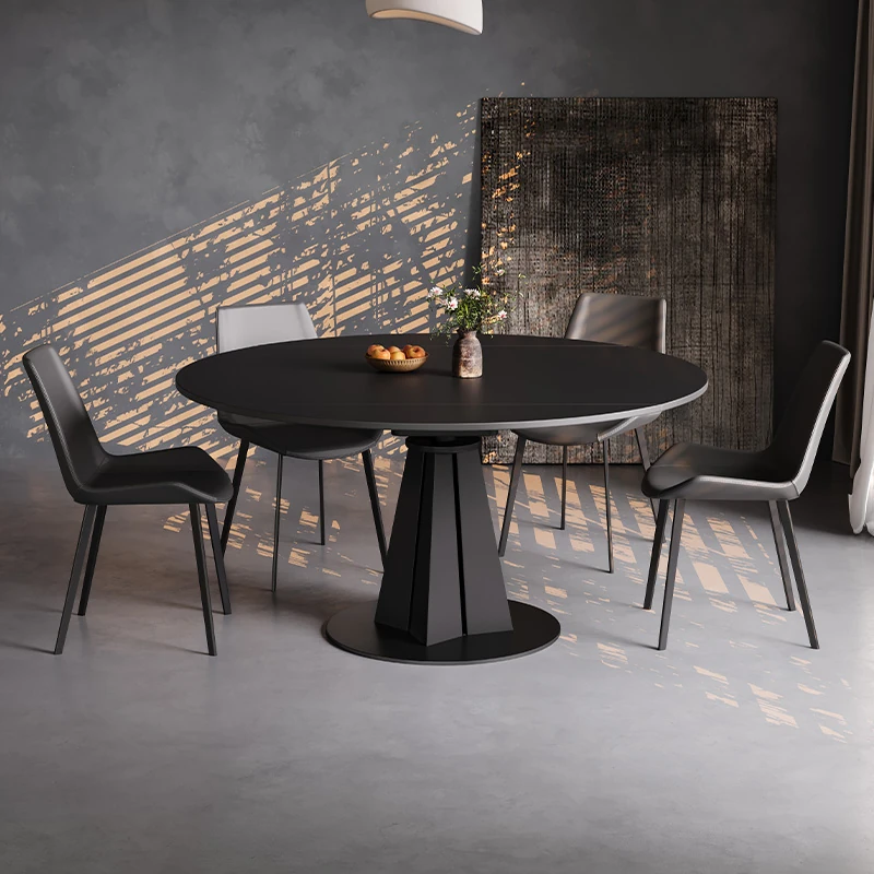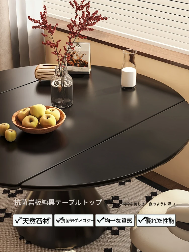 2025年新作!スタイリッシュなブラック伸縮岩板ダイニングテーブル - 小スペースに最適なモダンシンプルデザインの可変ラウンドテーブル!家庭にぴったりの機能性と美しさを兼ね備えています。
