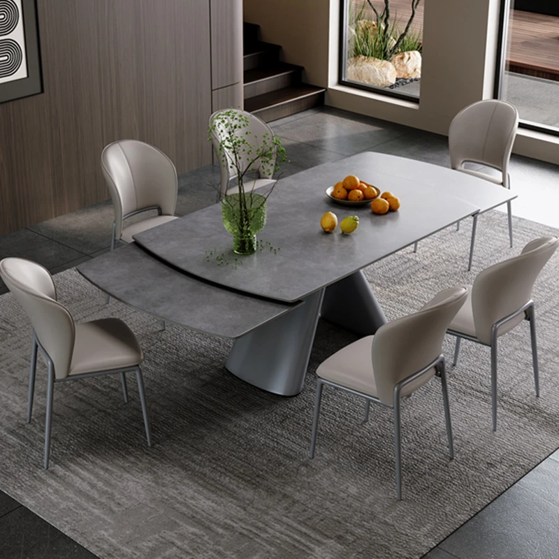イタリアンミニマリストデザインの回転式伸縮可能なダイニングテーブル&チェアセット - モダンでシンプル、ラグジュアリーな家庭用食卓。四角と円形の2WAY仕様で、スペースに合わせて自由に変形!