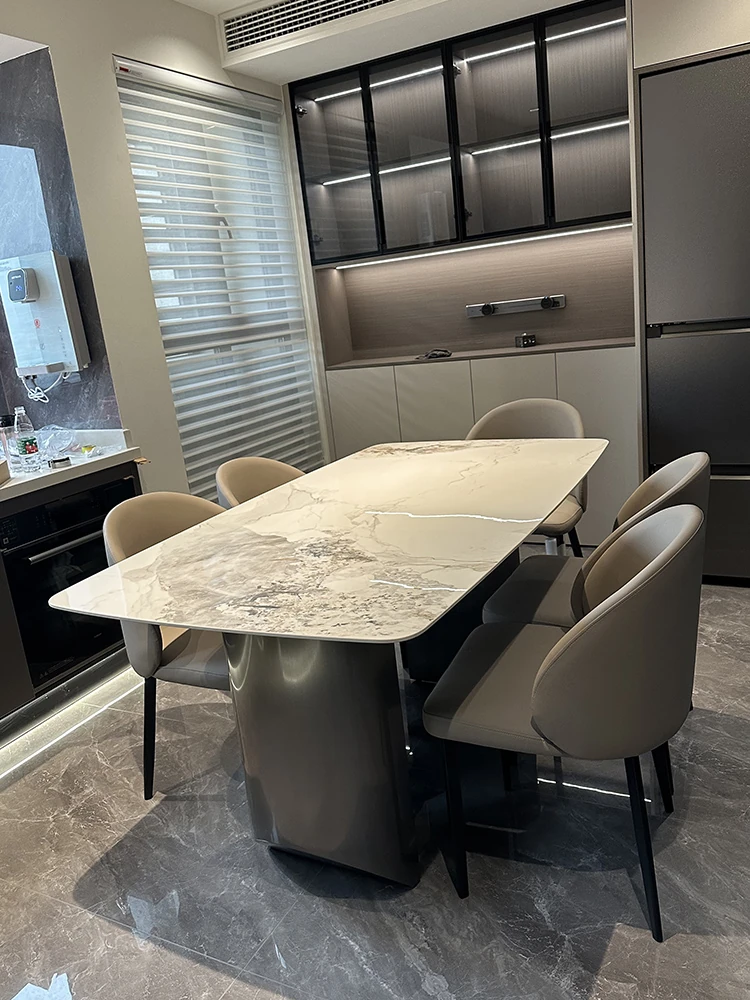 ヴァンプソン イタリアンミニマリズム 岩板ダイニングテーブル - ラグジュアリーでモダンなデザイン、小型住宅にも最適な高品質長方形テーブル。