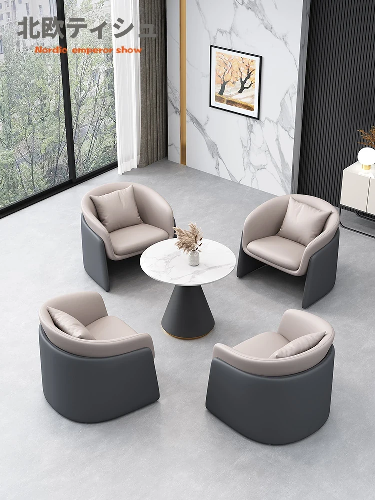 モダンでリッチな洽談テーブルセット - 休息エリアにぴったりな洗練されたデザイン!美容院や不動産営業所の接待にも最適。お客様を魅了する、快適さとスタイルを兼ね備えた一品!