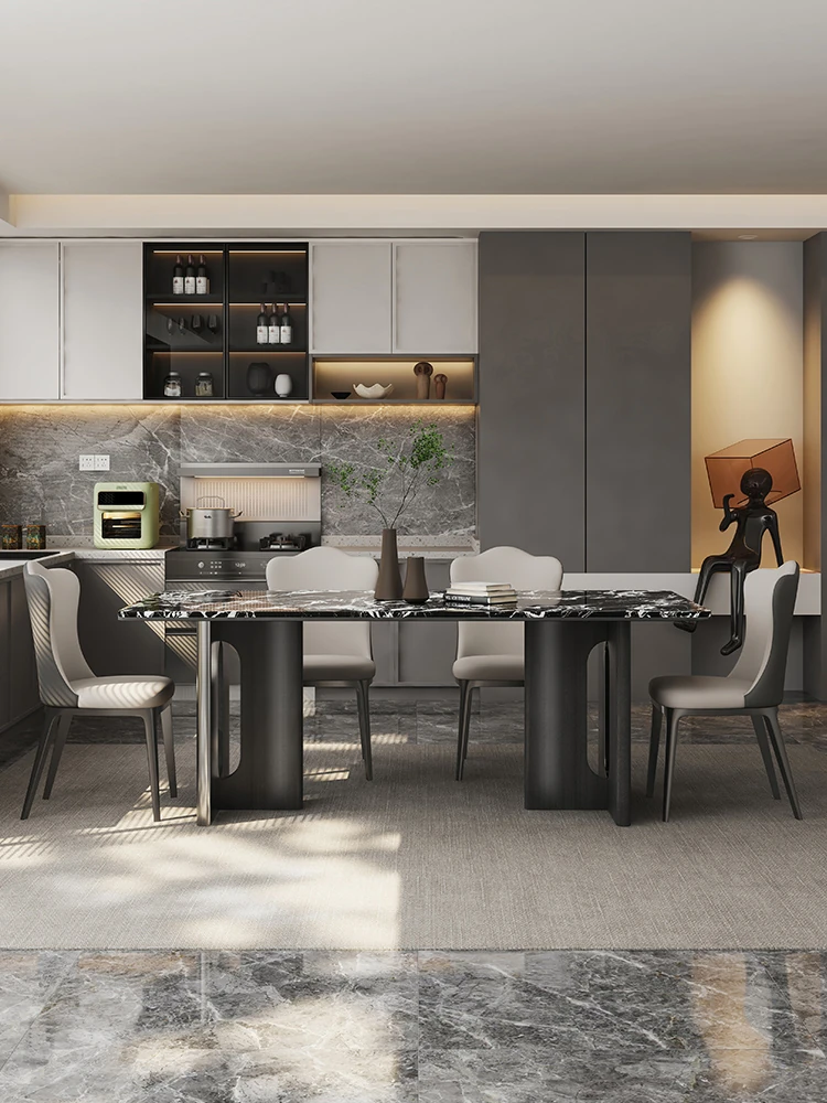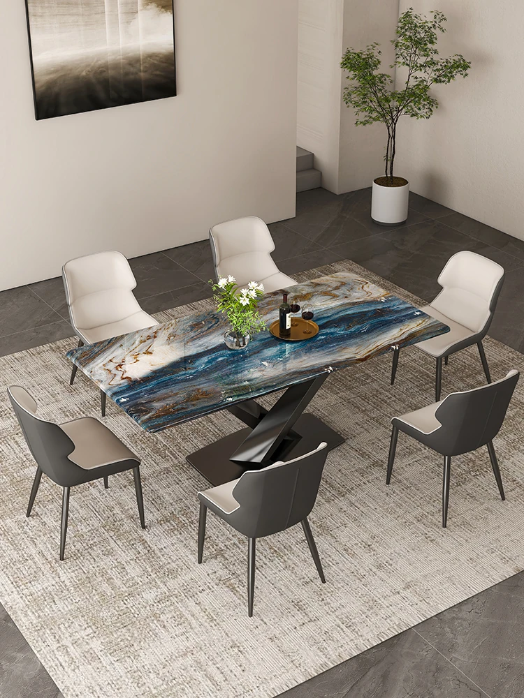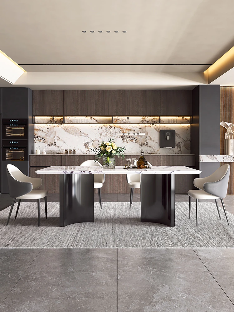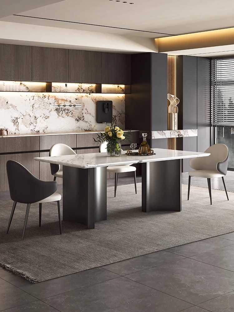 イタリアンミニマルラグジュアリー 雪山の飛狐デザイン 長方形 大理石ダイニングテーブル&チェアセット 2024年新作 ヴィラや広々とした居住空間に最適!